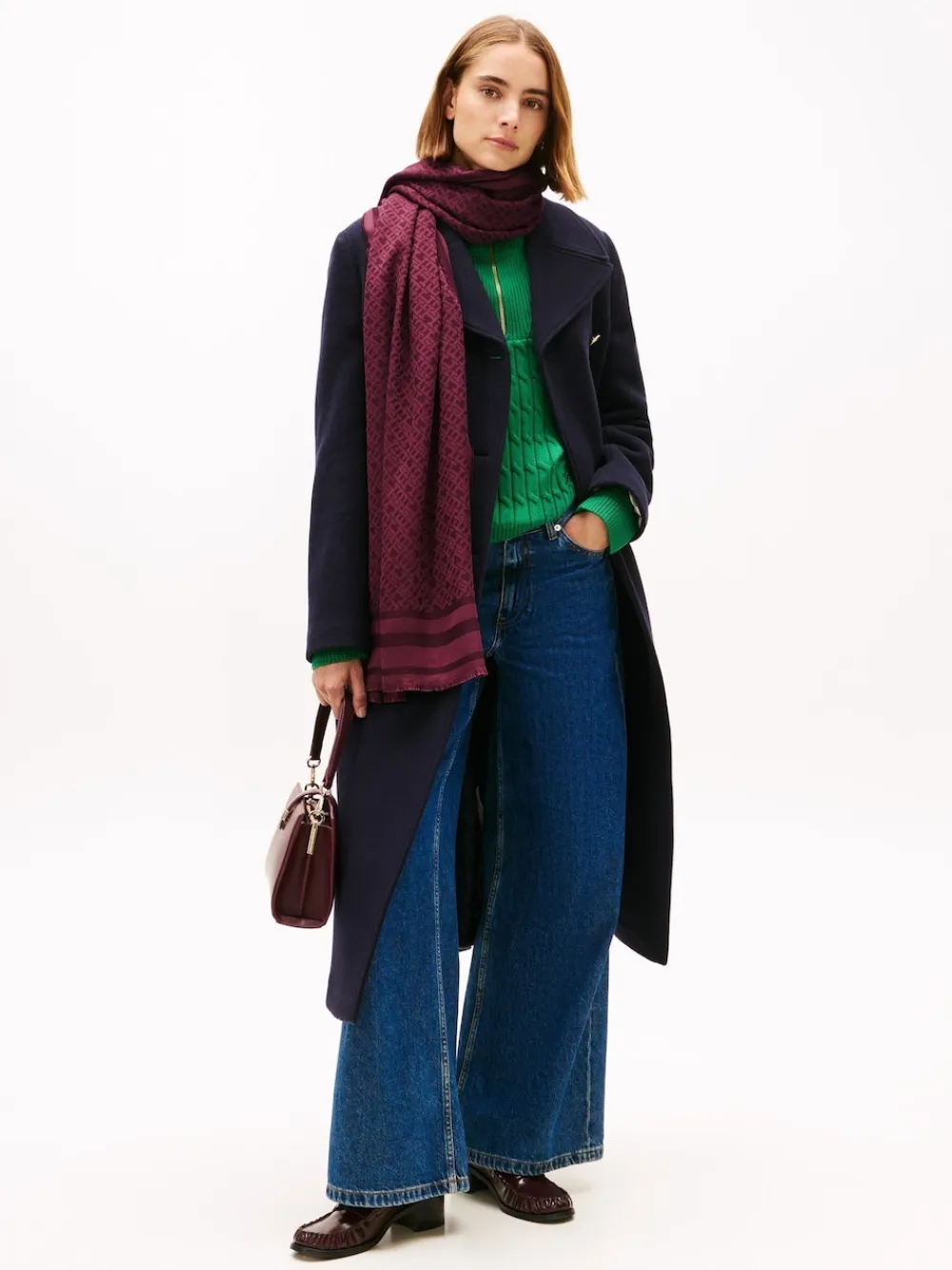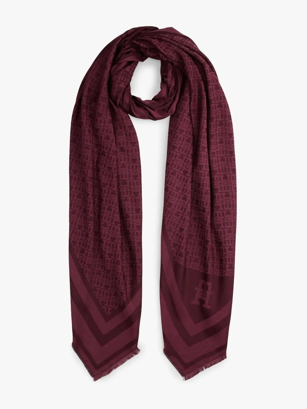 Wrap up in this soft scarf, featuring an all-over TH monogram jacquard that adds a stylish touch to your ensembles.Highlights• Modal blend• All-over TH monogram jacquard• Tonal border on ends• Frayed edges• Tommy Hilfiger brandingComposition & care• 48% acrylic, 37% modal, 15% wool Wipe clean only. 48% Acrylic, 37% Modal, 15% Wool.