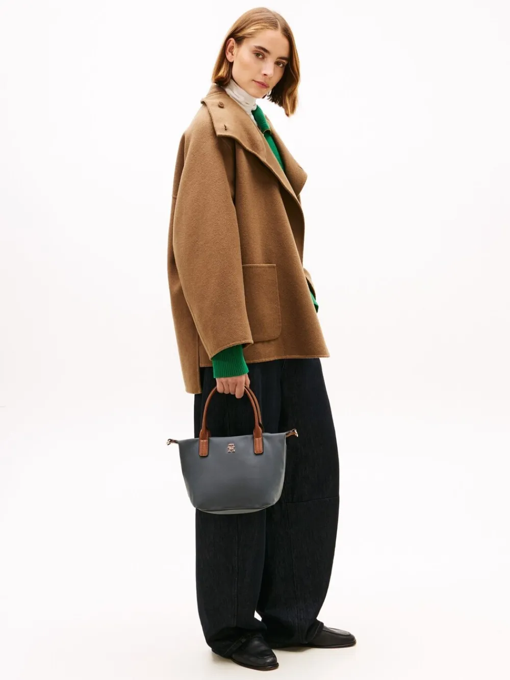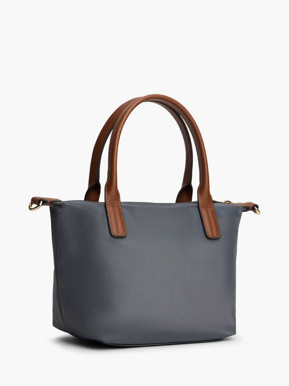 With its removable webbing crossbody strap and TH monogram hardware, this tote bag is a versatile piece with contemporary appeal.Highlights• Nylon• Zip closure• Two top handles• Removable webbing crossbody strap• One main compartment• One interior zipped pocket• Two interior slip pockets• TH monogram plaque on front• Tommy Hilfiger brandingShape & fit• 30 x 14 x 18.5cm• Capacity 5LComposition & care• 100% nylon Height 14cm Width 34cm Depth 21cm 90% Nylon, 10% Leather.