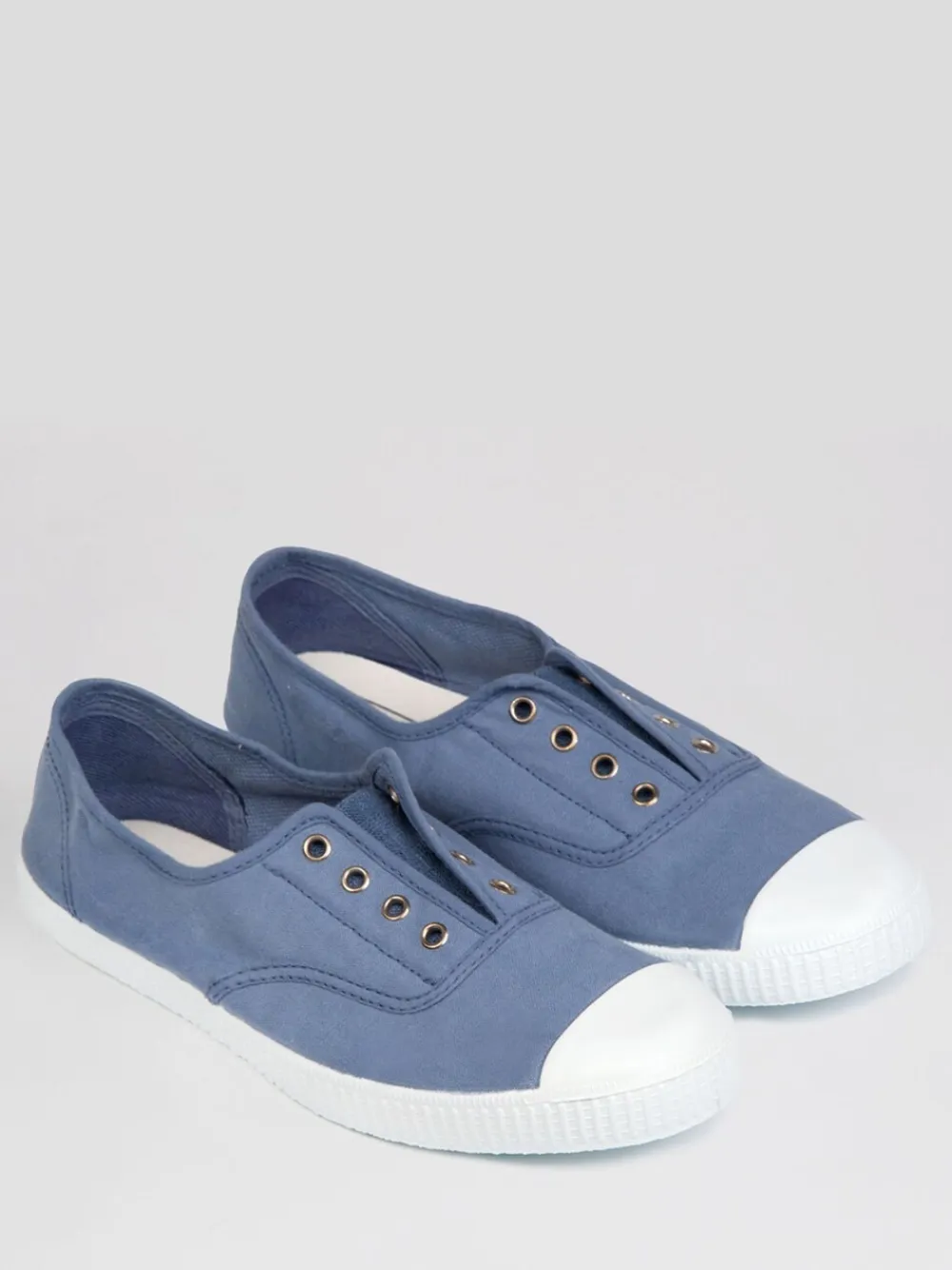 As featured in the Daily Mail, Telegraph, and Hello Magazine, our stylish ‘retro’ canvas shoes by Hampton Canvas are handmade in Europe and worn all over the world! Available in a fantastic range of colors, they are elasticated for ease and comfort. The name of our iconic Hampton Canvas Plum Plimsoll takes inspiration from Plum Island, Massachusetts, and was designed to evoke the feelings of summer holidays, dunes, seaside inns, and seafood lunches. Handmade in a family-run factory in Spain from cotton canvas and rubber we can guarantee that you’ll love the look and feel of these shoes, whether you’re a clam chowder person or always opt for the lobster roll. Available from a UK4.5/EU21 up to a UK9/EU43, our Hampton Canvas Plums are perfect for both Mummy & Me! Main – 100% Cotton. Sole – 100% Rubber.