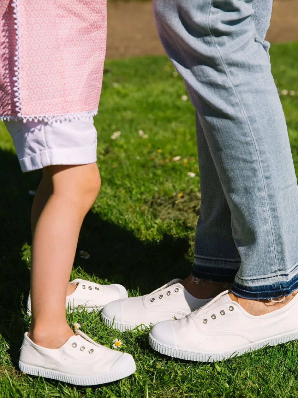 As featured in the Daily Mail, Telegraph and Hello Magazine, our stylish ‘retro’ canvas shoes by Hampton Canvas are handmade in Europe and worn all over the world! Available in a fantastic range of colours, they are elasticated for ease and comfort. The name of our iconic Hampton Canvas Plum plimsoll takes inspiration from Plum Island, Massachusetts and was designed to evoke the feelings of summer holidays, sand dunes, seaside inns and seafood lunches. Handmade in a family-run factory in Spain from cotton canvas and rubber we can guarantee that you’ll love the look and feel of these shoes, whether you’re a clam chowder person or always opt for the lobster roll. Available from a UK4.5/EU21 up to a UK9/EU43, our Hampton Canvas Plums are perfect for both Mummy & Me! Main – 100% Cotton. Sole – 100% Rubber.
