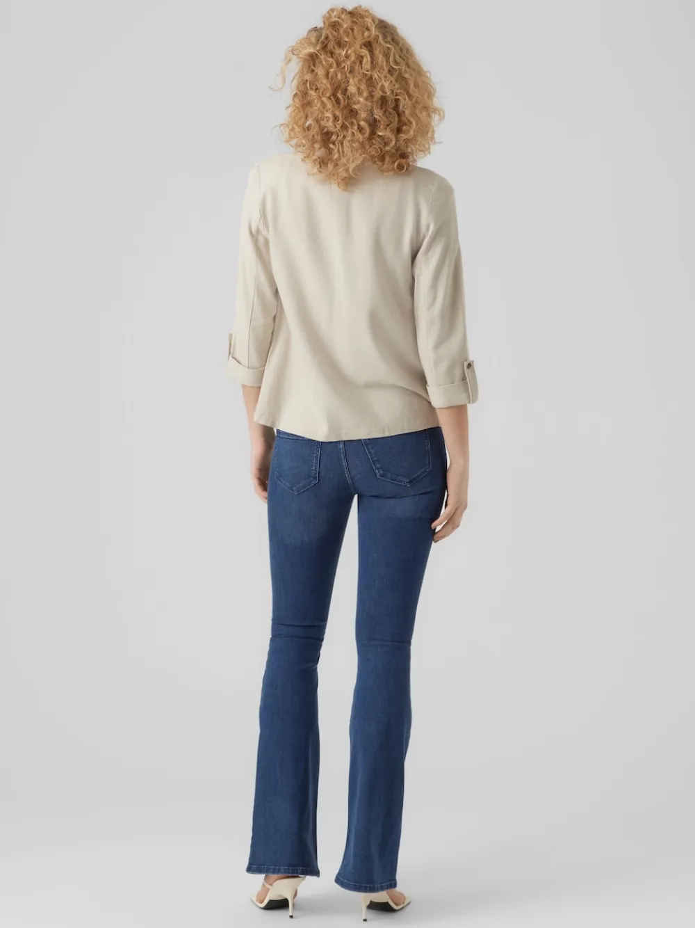 VERO MODA Linen Blend 3/4 Sleeve Jacket Beige Hot