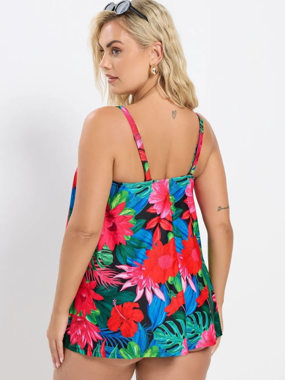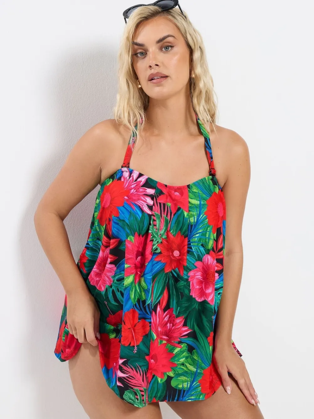Fit & Fashion Notes:Update your swimwear collection with this must-have tropical print tankini top. Made from a stretch chlorine resistant fabric, it features an a-line style, built-in cups for additional bust support and detachable straps. Pair with swim shorts and sandals for the ultimate holiday look you will love. Why We Love It:A poolside must-have. Machine washable. 85% Polyester, 15% Elastane.