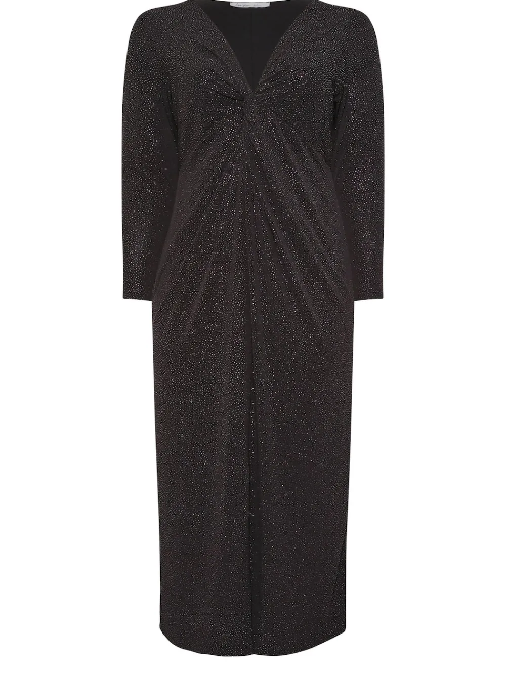 Fit & Fashion Notes: Add a touch of glamour to your evening wardrobe with this new-in Yours London dress! Made from a comfortable jersey fabric, it features a glitter design, long sleeves, a knot front detail, a split hem, and is complete in a maxi length. Style with your favourite heels and a clutch bag for a polished look you will love to wear! Why We Love It: Perfect for the sparkle season ahead! Features: Glitter design Knot front style Long sleeves V-neckline Front split hem detail Maxi length Made from a comfortable jersey fabric 95 polyester, 5 elastane Length from approx: 136cm/53.5 Machine washable Machine washable. 95% Polyester, 5% Elastane.