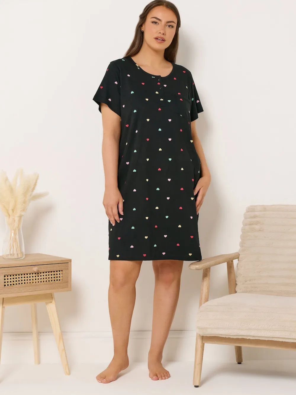 Fit & Fashion Notes:Sleep in style this season with this must-have nightdress! Made from a soft jersey fabric, it features a heart print, a button placket design, a chest pocket, a round neckline, and short sleeves. Team with your favourite slippers to complete the look!Why We Love It:The nightdress your wardrobe has been looking for. Machine washable. 100% Cotton.