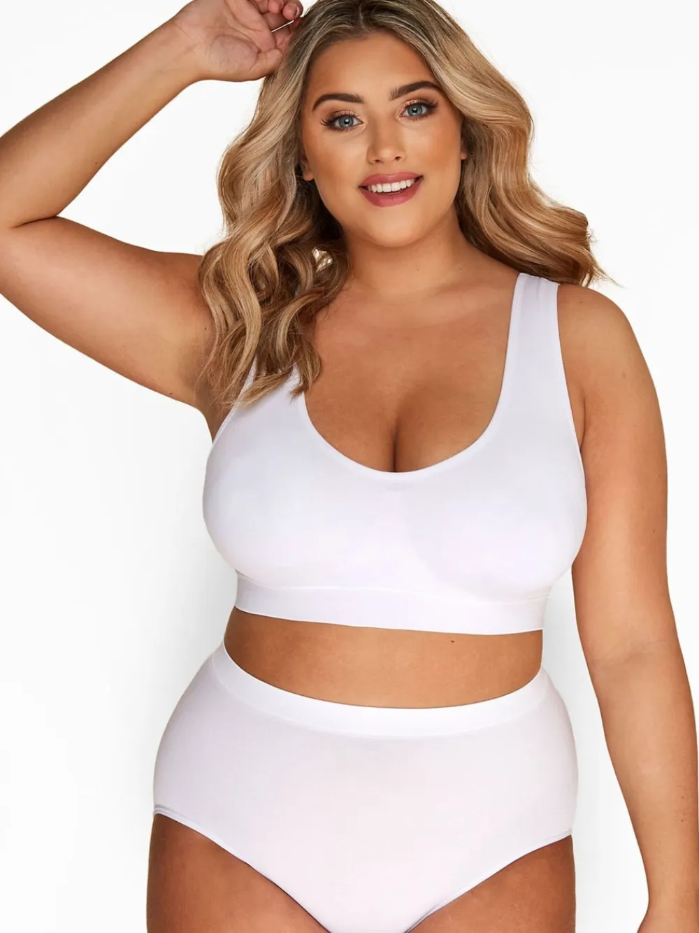 Fit Fashion Notes: This 2-pack of plus-size bras is a must-have addition to your basic collection. Made from a stretchy fabric, it features a non-padded design and seamless finish for ultimate comfort. Features: 2 pack Seamless fit bra Non-padded, non-wired cups No hooks or clasps Wide straps for extra support No visibility under clothing 92 polyamide, 8 elastane, excluding trims Machine washable Model is 5ft 10/178cm and size UK 16/EU 44. Machine washable. 92% Nylon, 8% Elastane.