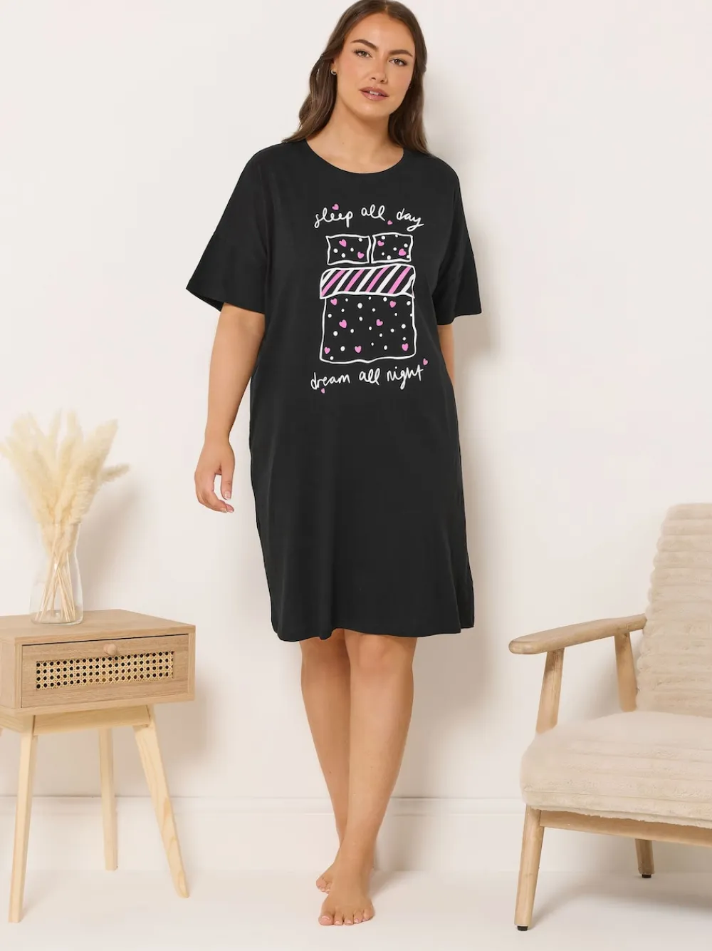 Yours Curve Black Sleep All Day Sleeptee Nightdress Outlet