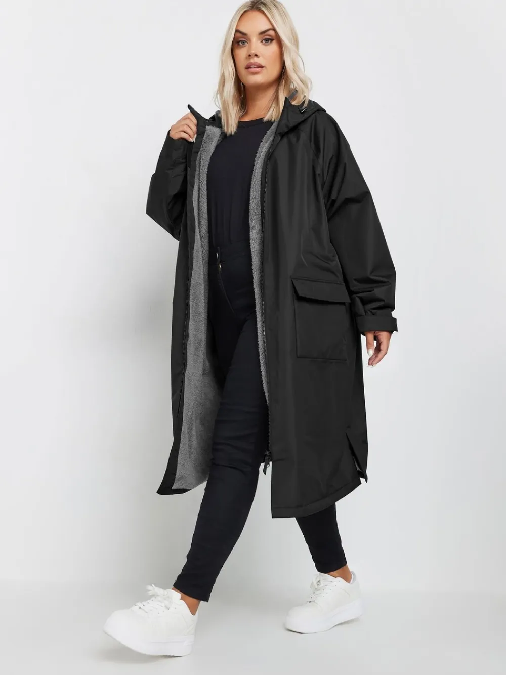 Yours Curve Black Waterproof Fleece Lined Robe Discount