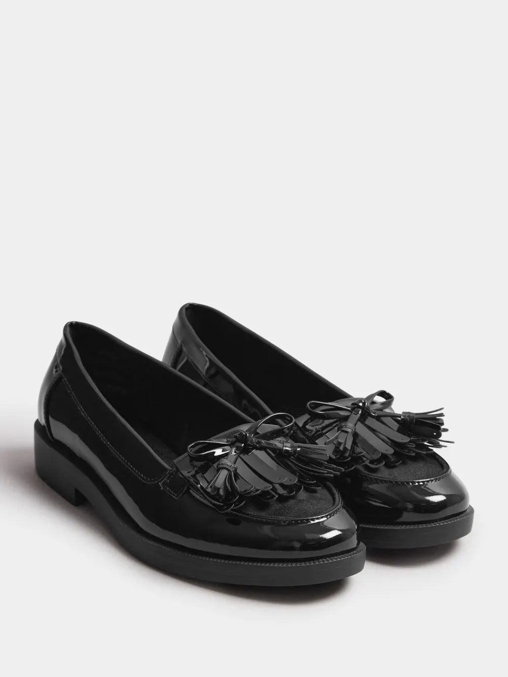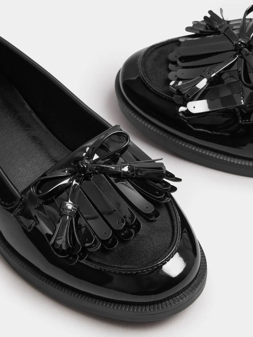 Yours Curve Black Wide Fit Extra Wide Fit Tassel Patent Loafers