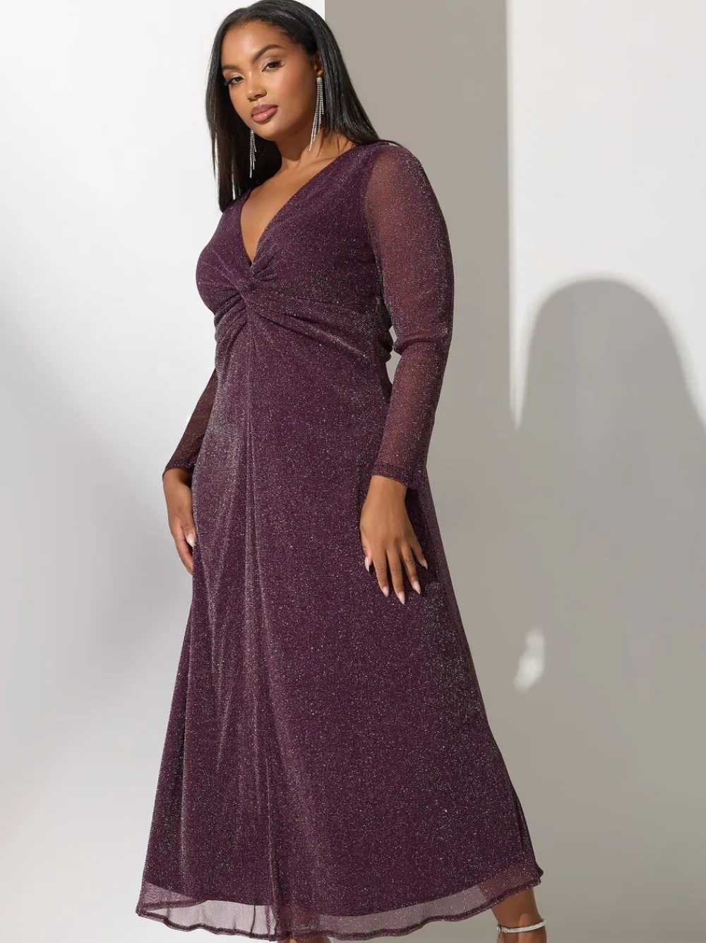 Fit & Fashion Notes: Make an entrance with our new-in maxi dress from Yours London! Made from a comfortable jersey fabric, it features a metallic design, a twist front style, long sleeves, and a flattering v-neckline. Style with your favourite heels and a clutch bag for the perfect evening look! Why We Love It: A sophisticated style your evening wardrobe needs! Features: Metallic design Twist front style Long sleeve V-neckline Fully lined Maxi length Made from a comfortable jersey fabric 100 polyester Length from approx: 136cm/53.5 Machine washable Model is 5’7/173 cm and size UK 16 / EU 44. Machine washable. 100% Polyester.