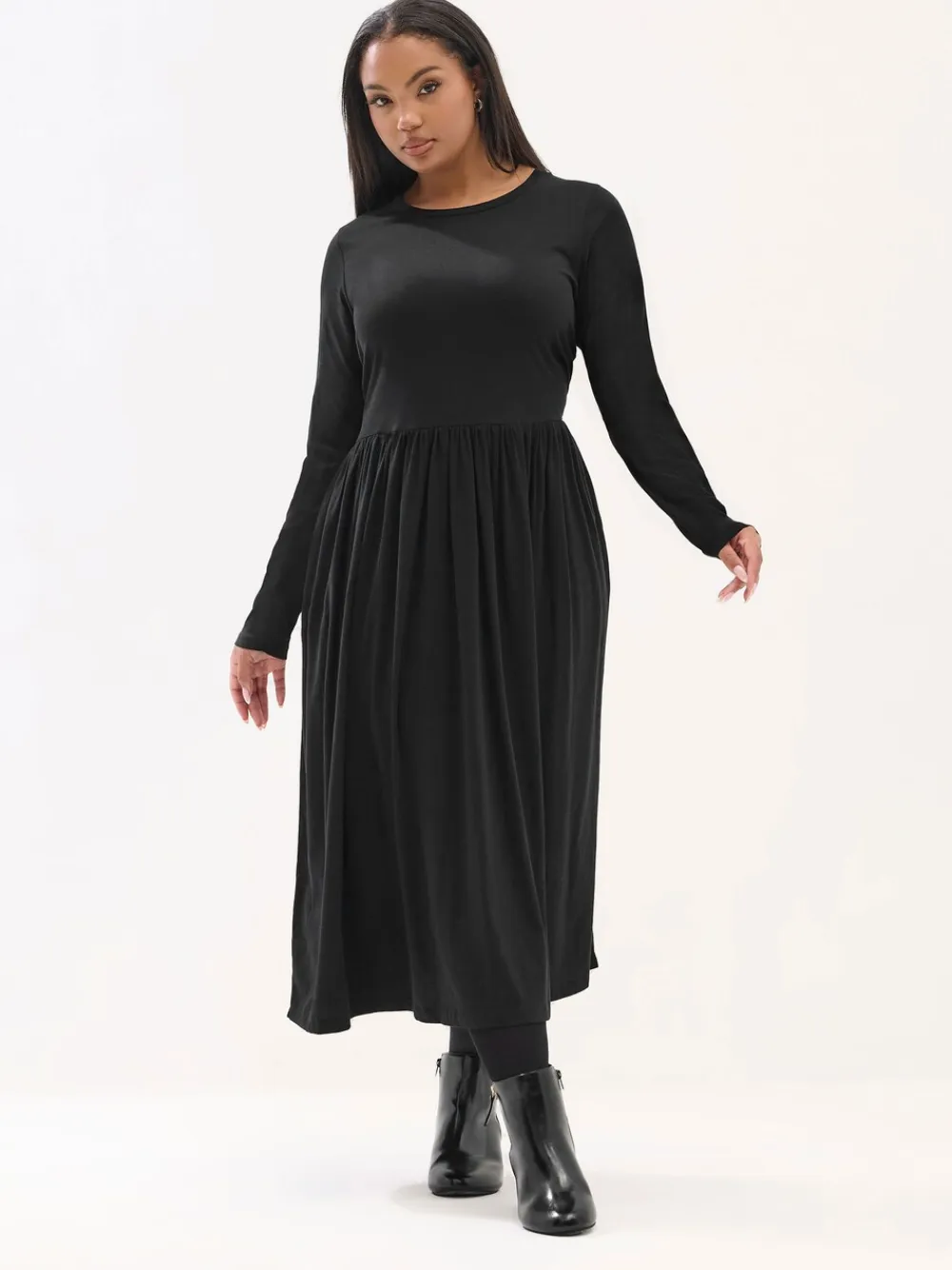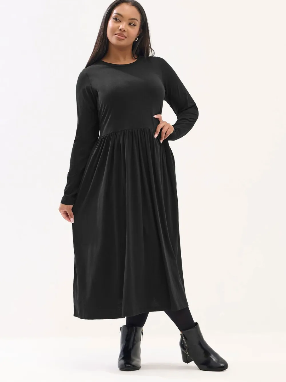 Fit & Fashion Notes: In need of a wardrobe refresh? Look no further than this new-in midi dress! Made from a soft cotton fabric, it features a peplum style, long sleeves, a round neckline, and two side pockets. Team with your favourite trainers for a casual everyday look you can rely on. Why We Love It: Set to become the hardest working dress in your wardrobe! Features: Peplum style Long sleeves Two side pockets Round neckline Midi length Made from a soft cotton fabric 100% cotton Length from approx: 128cm/50.3” Machine washable Model is 5’10.5”/178cm and size UK 16/EU 44. Machine washable. 100% Cotton.