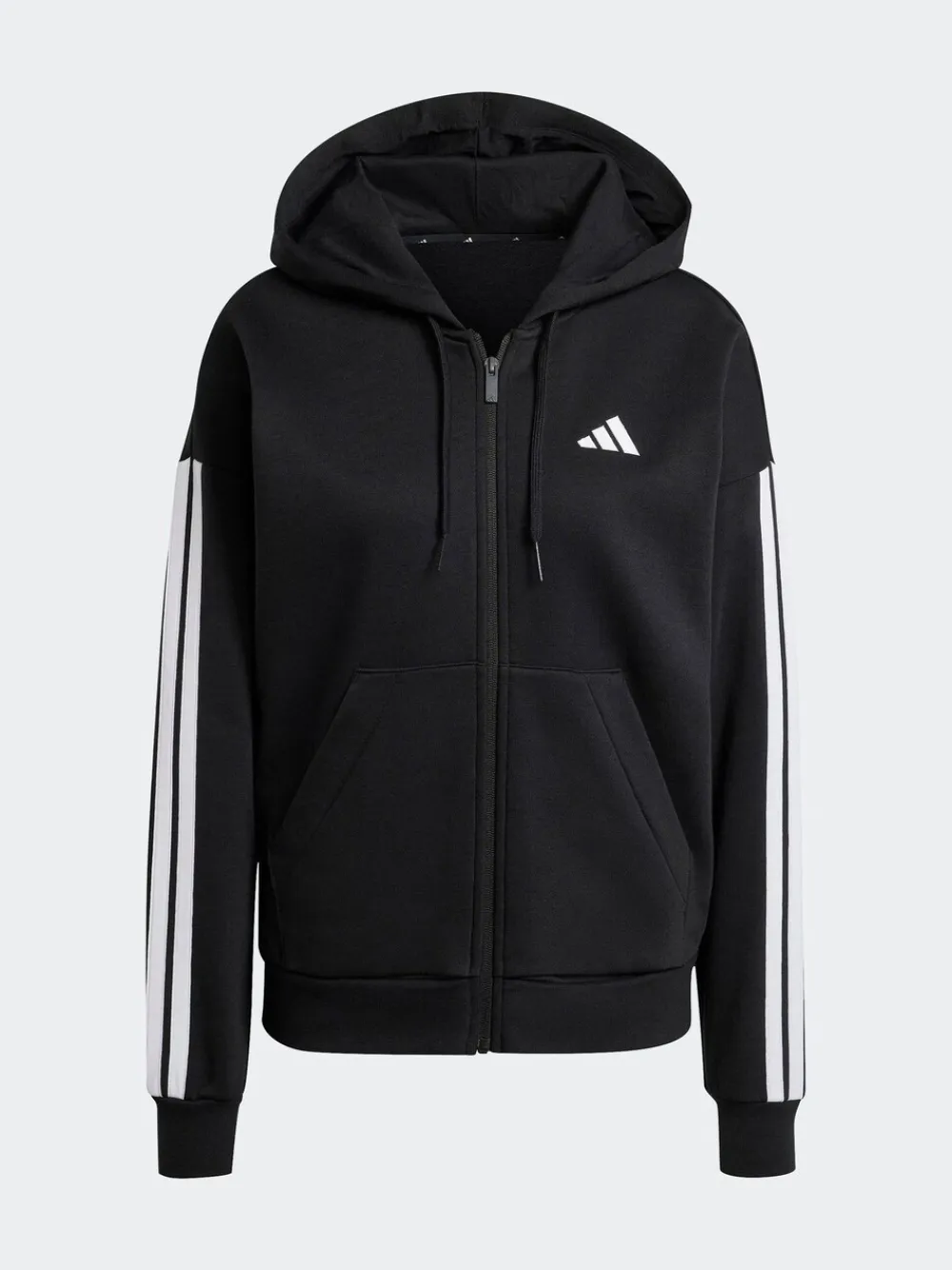 adidas Black Essentials 3-Stripes Full Zip Fleece Hoodie Clearance