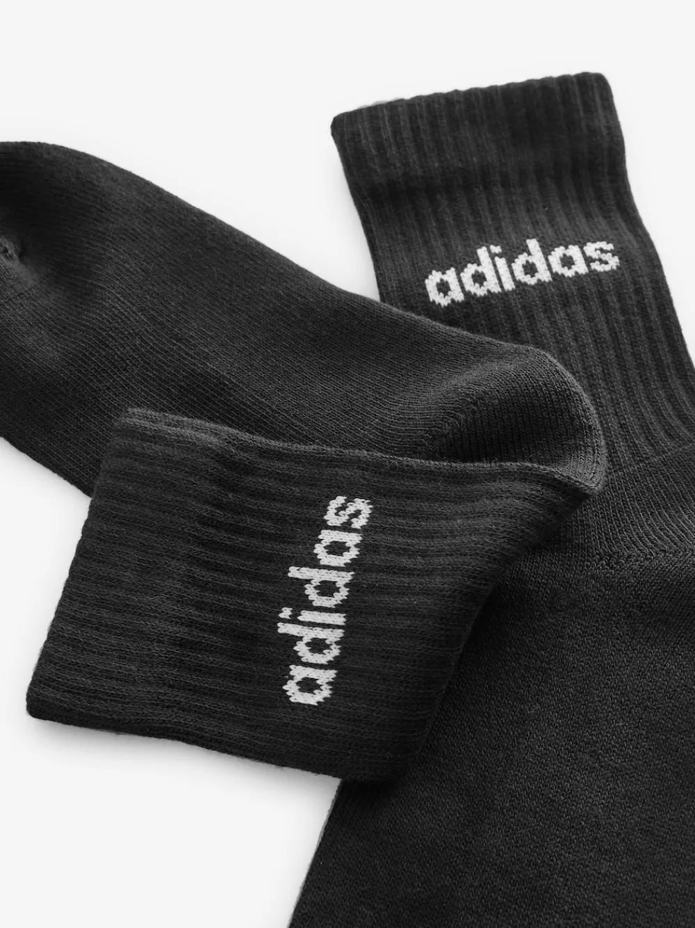 adidas Black Linear Crew Cushioned Socks 3 Pack Clearance