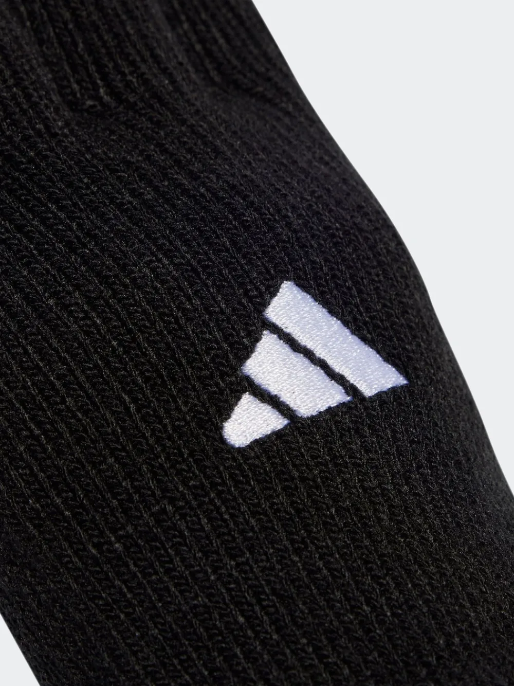 Stay warm on the field and on the sidelines. These adidas Tiro League football gloves will keep you comfortable with a snug, ribbed cuffs and soft knit fabric. The fingertips are designed to work with touchscreens so you can stay tuned to the latest scores when you’re not part of the action. 100% Polyester.