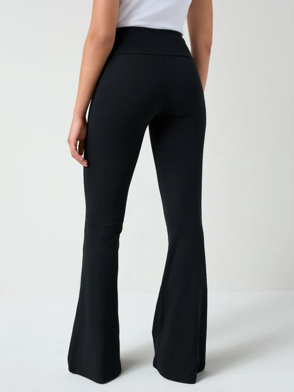 Built to move with you. Sporty yet stylish, these adidas ribbed leggings have a tight, stretchy fit that opens up into flared hems. Pull them on for a chill day at home or wear them out on the town-in motion or at rest, you all feel supported and chic. Elastic waist 46% Cotton, 45% Viscose, 9% Elastane.