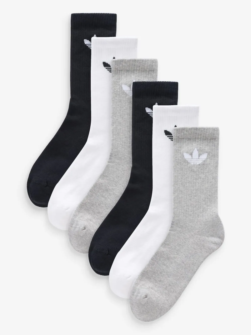 adidas Originals Black Trefoil Crew Socks 6 Pack New