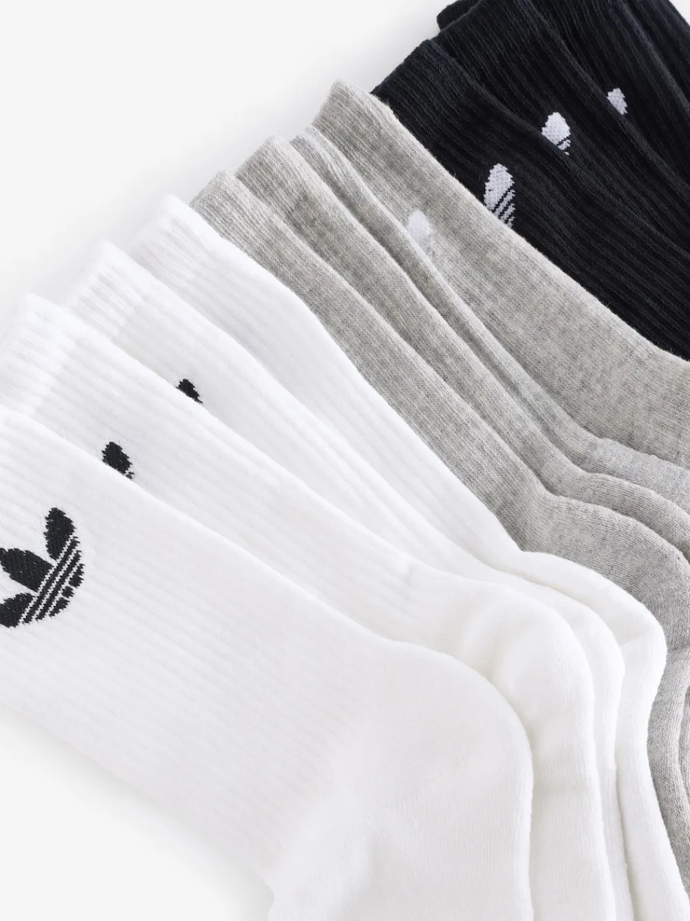 The Trefoil has become more than just a recognizable icon. It has been worn by our favourite athletes, musicians, and artists. It stands for style and comfort even down to the socks. The adidas Trefoil Cushion Crew Socks come with six pairs per pack to make sure you stay fresh for the week. Upper 100% Polyester, Lining. and Sock 100% Textile. Sole 100% Rubber.
