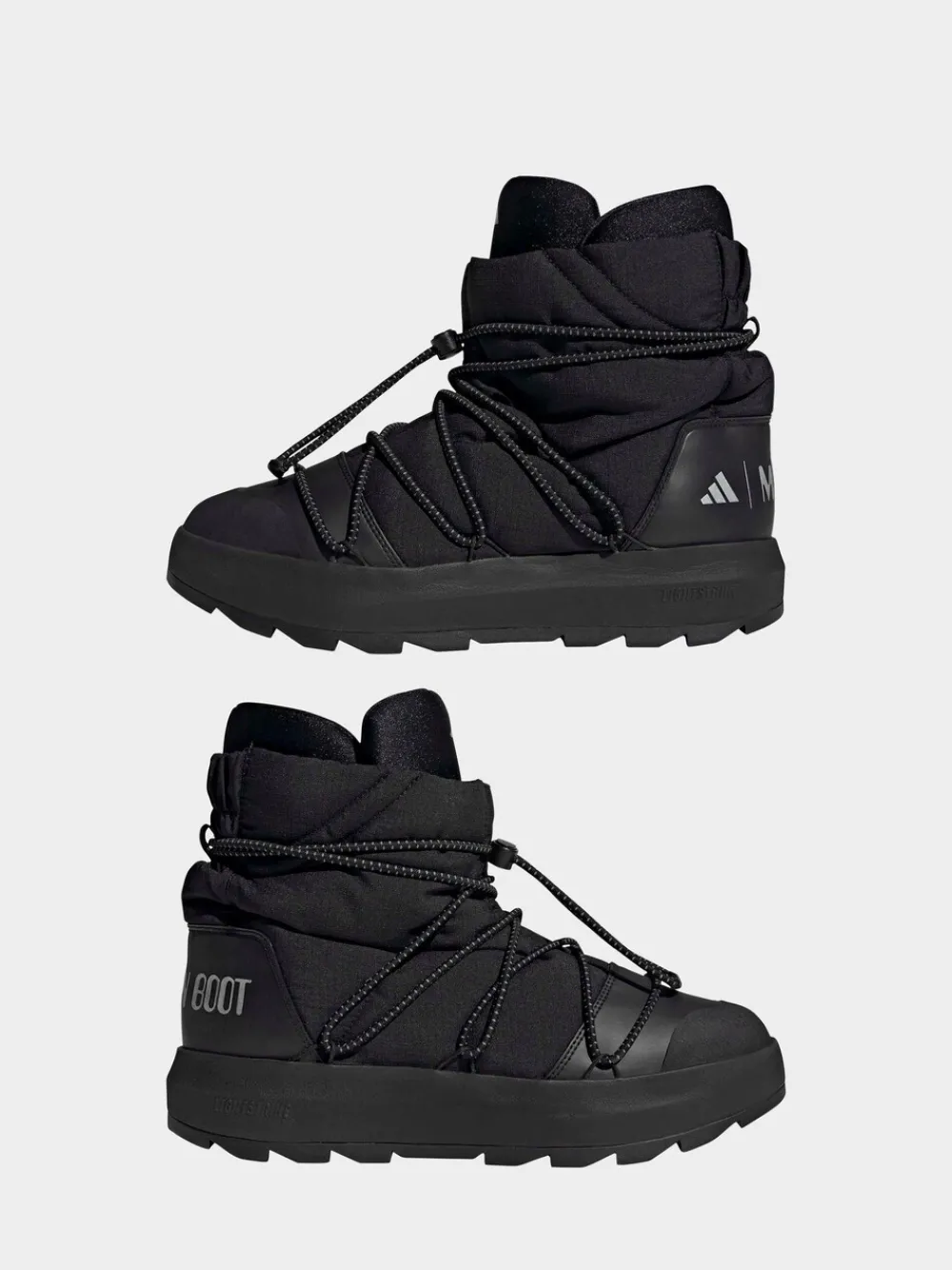 Crafted for those who dare to defy the ordinary. Adidas x MOON BOOT ACE MID blends bold style with innovation to elevate your daily routine. Designed with a regular fit for comfort. This silhouette features a rubber outsole that offers dependable traction across varied terrain. While the textile and synthetic upper provide durability and a snug fit for confident footing. Adidas Lightstrike technology powers the ride. A super-light, responsive foam cushioning delivering next-level speed and agility. Whether you’re navigating city streets or stepping into new territory. This silhouette is built to keep you ahead of the curve. Upper – 100% Polyester. Sole – 100% Rubber.