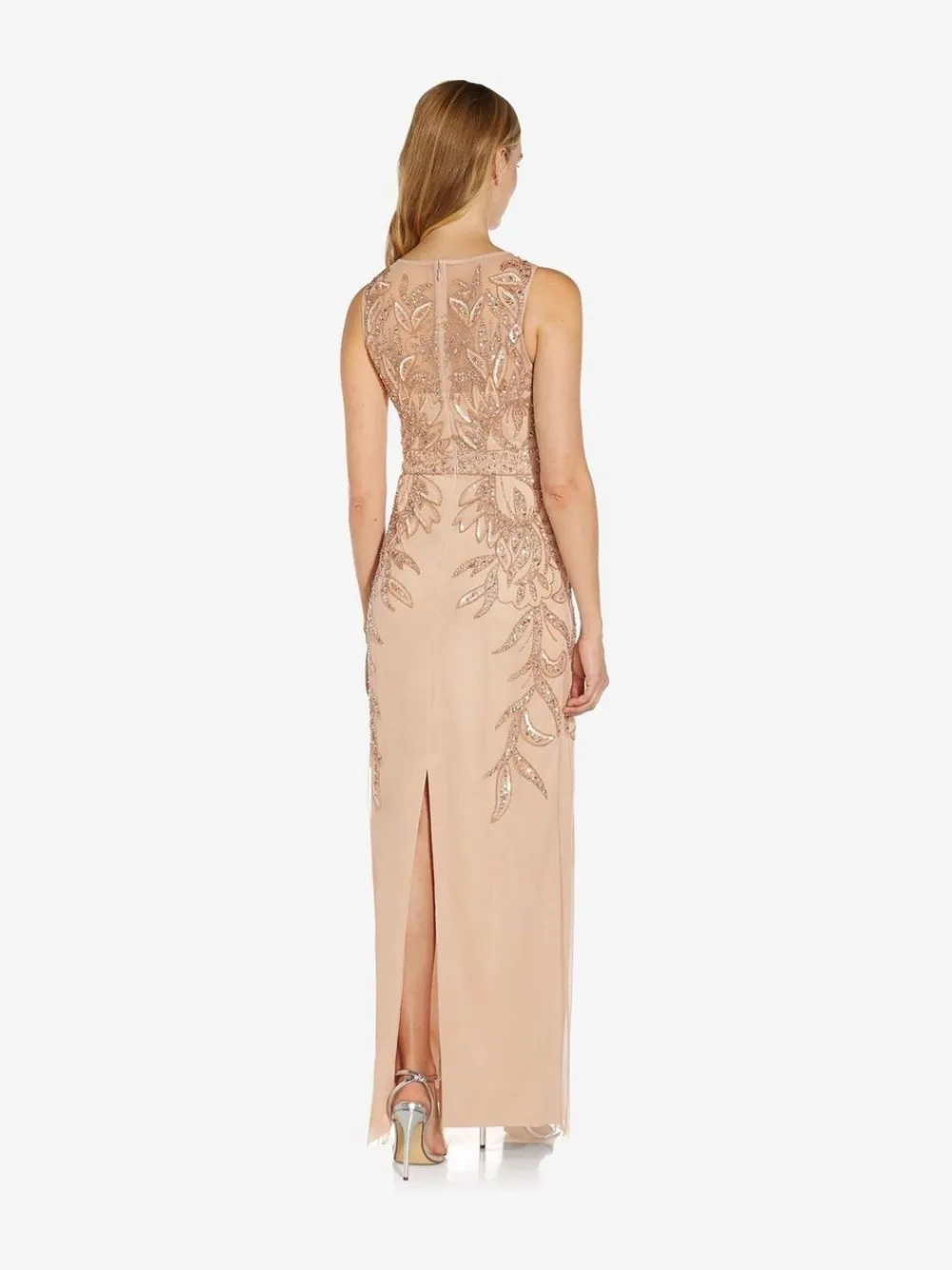 Adrianna Papell Pink Studio Beaded Column Long Dress Best