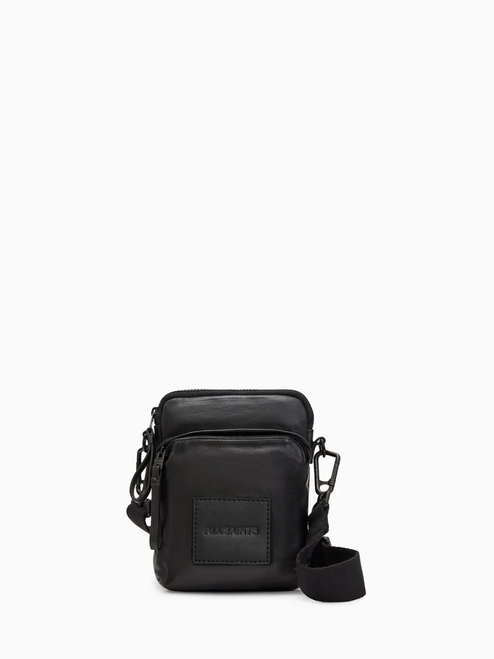 Keep it close with the Falcon Pouch.Crafted from premium leather, this versatile pouch features an adjustable and detachable strap with our unmistakable All Saints signature. Carabiner clips offer dynamic styling options, while matte black hardware and an embossed logo patch add a sleek finish. Details: Zip closure Adjustable and detachable strap All Saints signature carabiner clips One external slip pocket One external zip pocket One internal credit card slot Matte black hardware All Saints white embossed logo patch Dimensions: Height: 20cm. Main 100% Leather. Lining 100% Cotton. Trim 100% Leather.