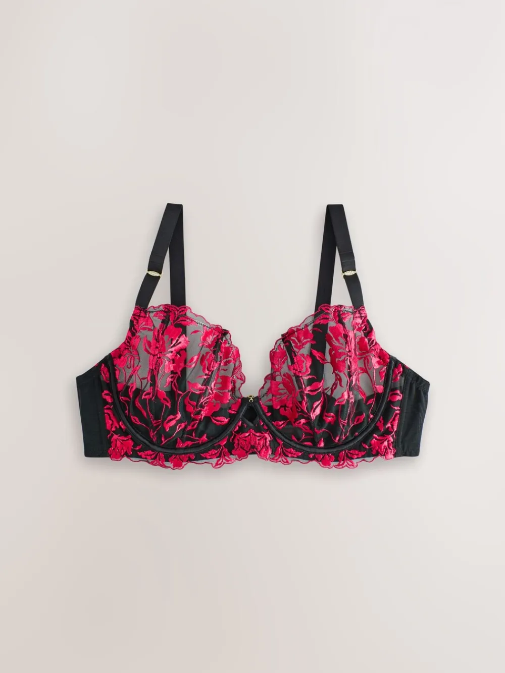 The Hero Non-Padded Bra by Ann Summers is crafted in a bold and lustrous floral Ciré embroidery with sheer mesh. With sheer mesh underwired cups sculpted with flexible boning, while the underband ensures the perfect fit. Beautifully finished with gold-tone hardware with shimmering diamantes, wear together with the matching lingerie to complete the look. KK wears bra size 34B and Diana wears bra size 40E. Hand wash only. 100% Polyester.