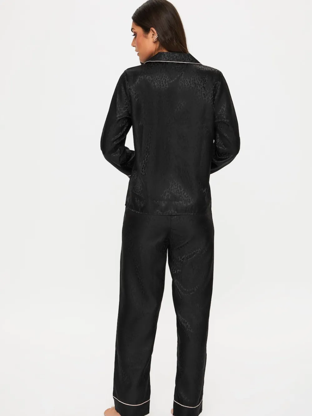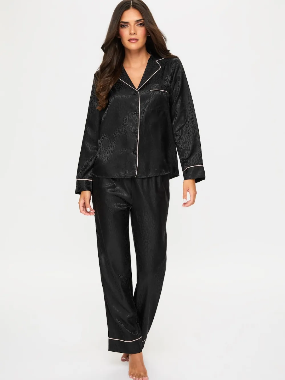 Opt for a touch of luxury with our Signature Satin Long Pyjama Set. This two-piece set includes a long-sleeved shirt and trousers with an elasticated waistband. Finished with a subtle leopard print and pink piping. Luxury and comfort all in one.Browse our full PJs for more or take a look at our New in Nightwear new in nightwear Machine washable. 100% Polyester.