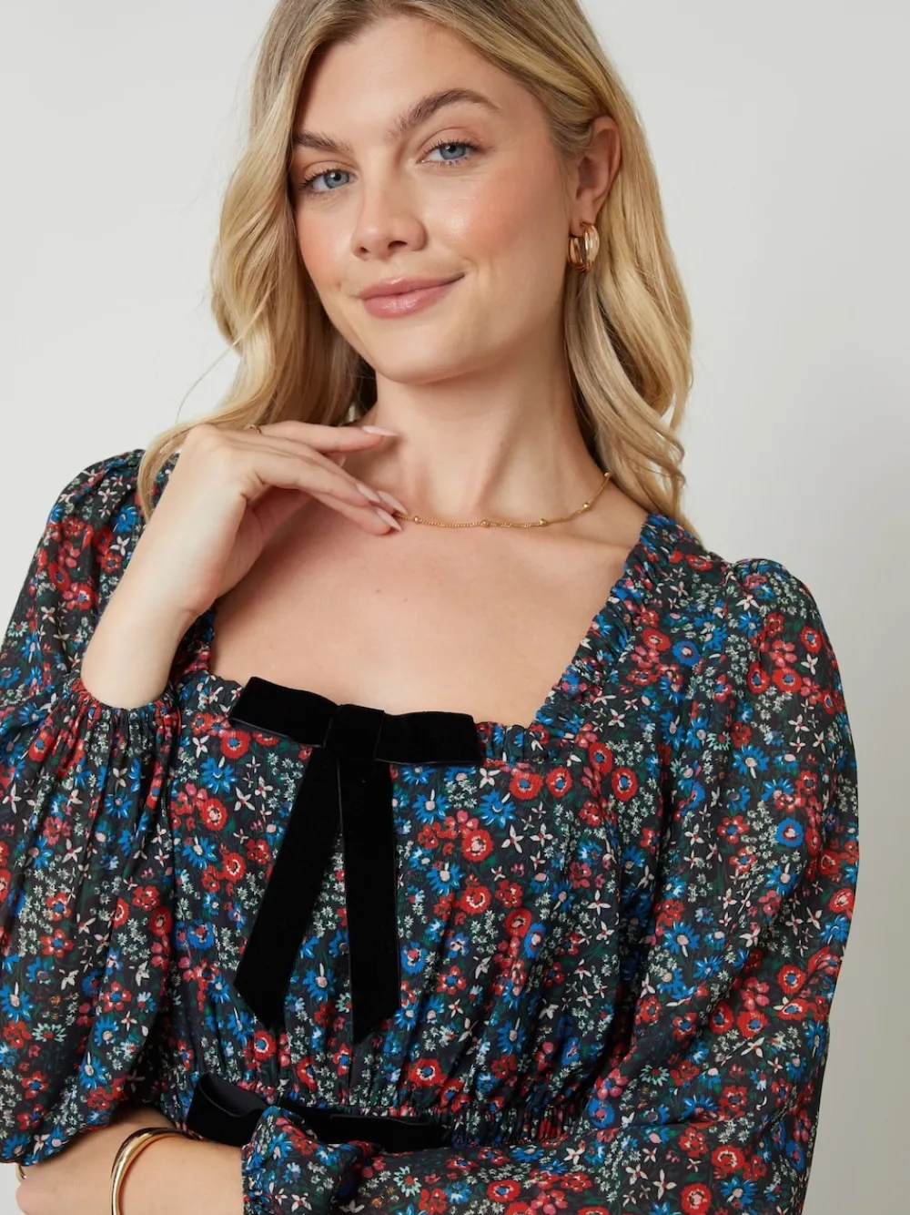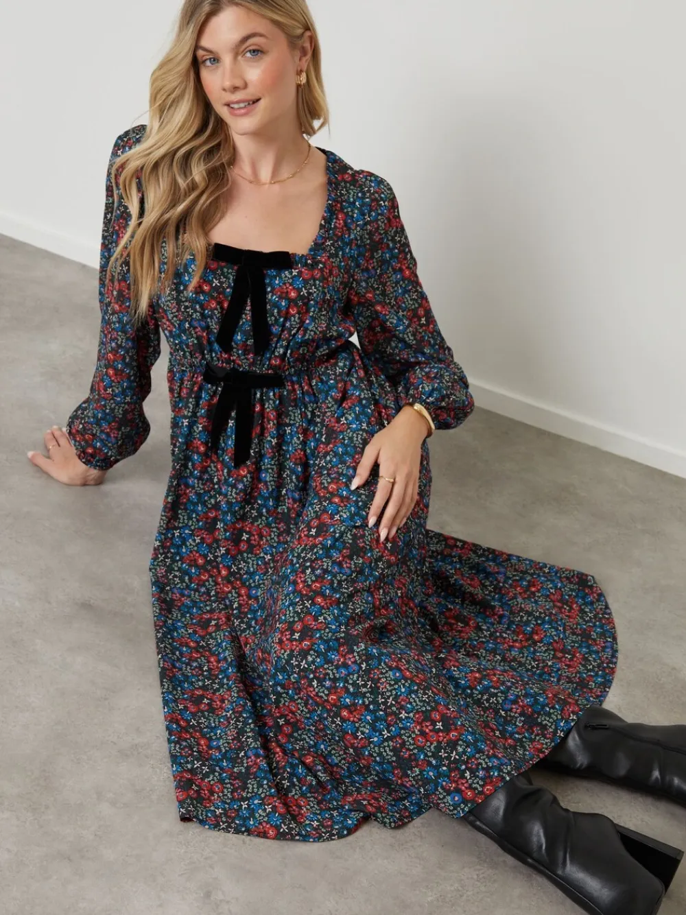 A timeless shape, this milkmaid midi dress from Another Sunday is an easy favourite for day-to-evening dressing. Featuring a flattering square neckline and soft long sleeves with elasticated cuffs, it’s finished with two velvet bows on the front for a sweet touch. Side pockets add practicality, while the midi length makes it perfect with boots or flats. Machine washable. Main 100% Polyester. Lining 95% Polyester, 5% Elastane.