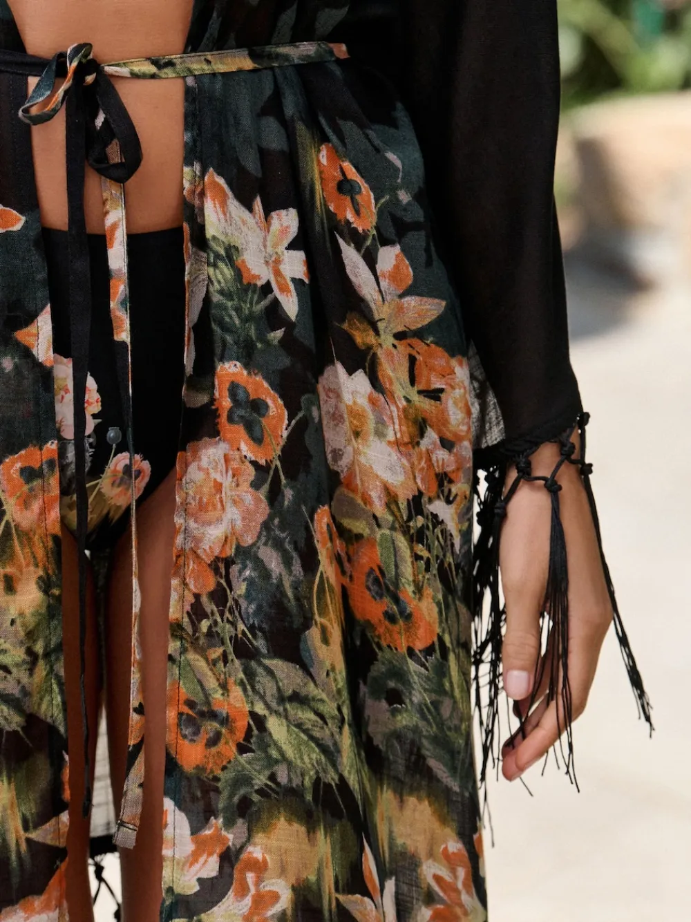 B by Ted Baker Viscose Tassel Kimono Black Koi Floral Cover-Up Best