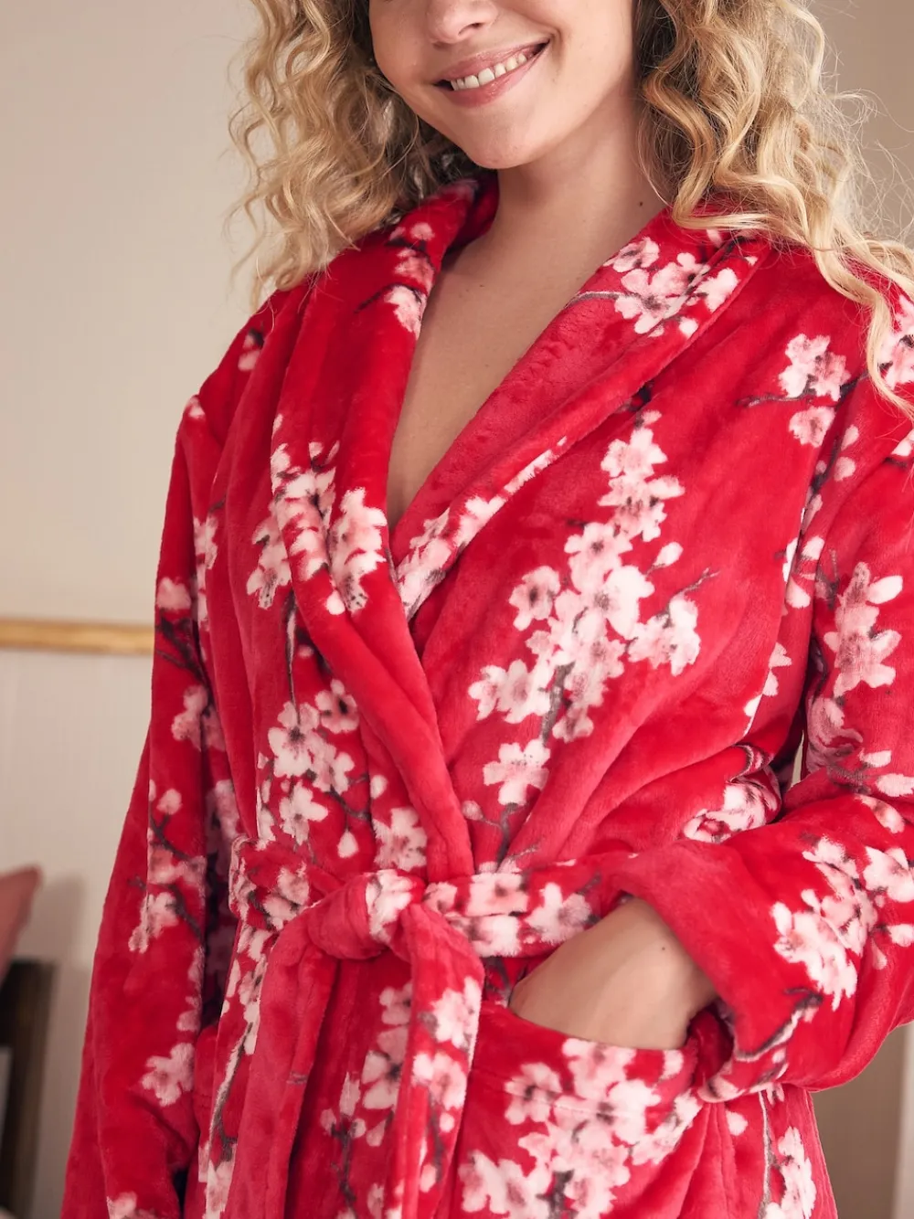 Wrap yourself in warmth with the Bath & Body Works Cosy Robe. This long-sleeve robe is crafted from a wonderfully soft, cosy fabric and features a charming cherry blossom print. It includes a tie waist for a comfortable fit and front patch pockets for convenience. Pair it with the matching pyjamas to complete your relaxed loungewear look. Cosy fabric Cherry blossom print Matching pyjamas available Machine washable. 100% Recycled polyester.