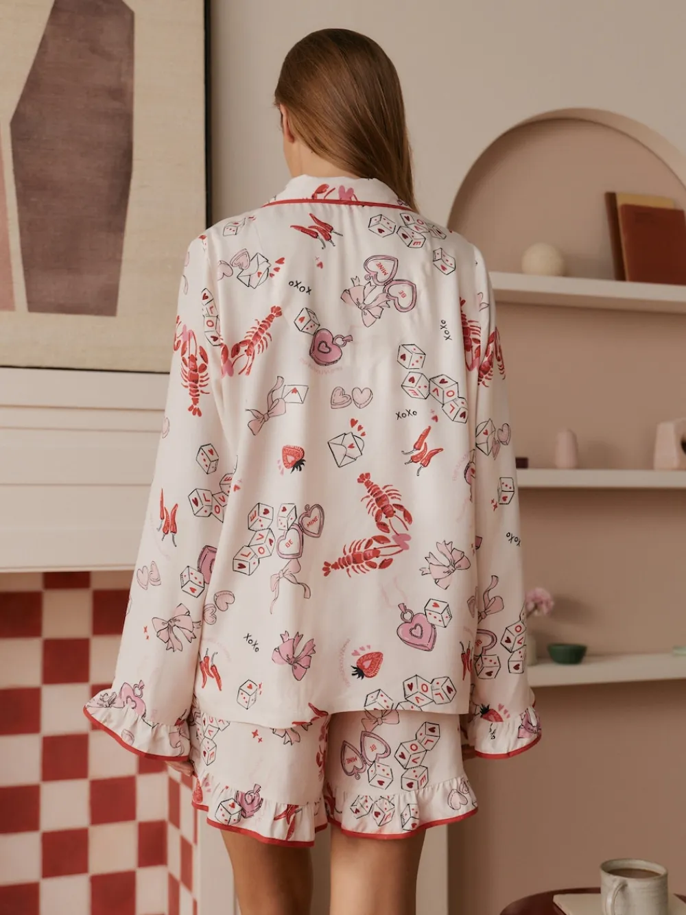 Bath & Body Works Red/White Be Mine Love Long Sleeve Shorts Set New