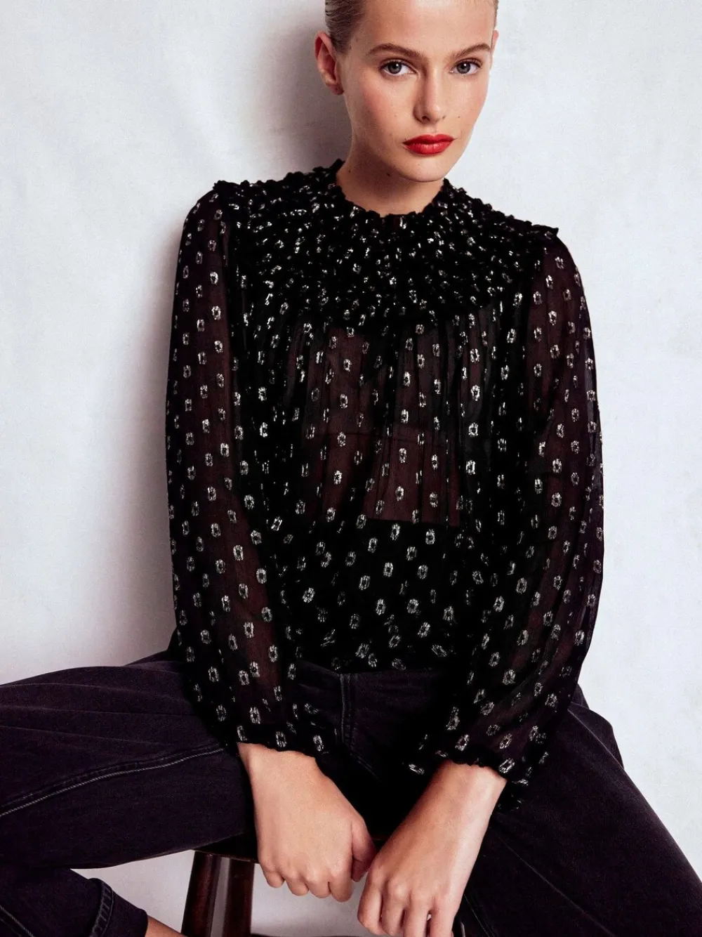 Be the first to review “Boden Black Metallic Ruffle Collar Top Online” Cancel reply