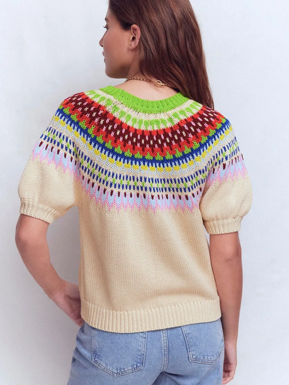 A knitted T-Shirt is exactly what your wardrobe needs right now. This one is made from 100% cotton and features short puff sleeves, making it a versatile style that spans the seasons. Choose from lots of standout colours and designs, including a heart print for Valentine’s Day. Machine washable. 100% Cotton.