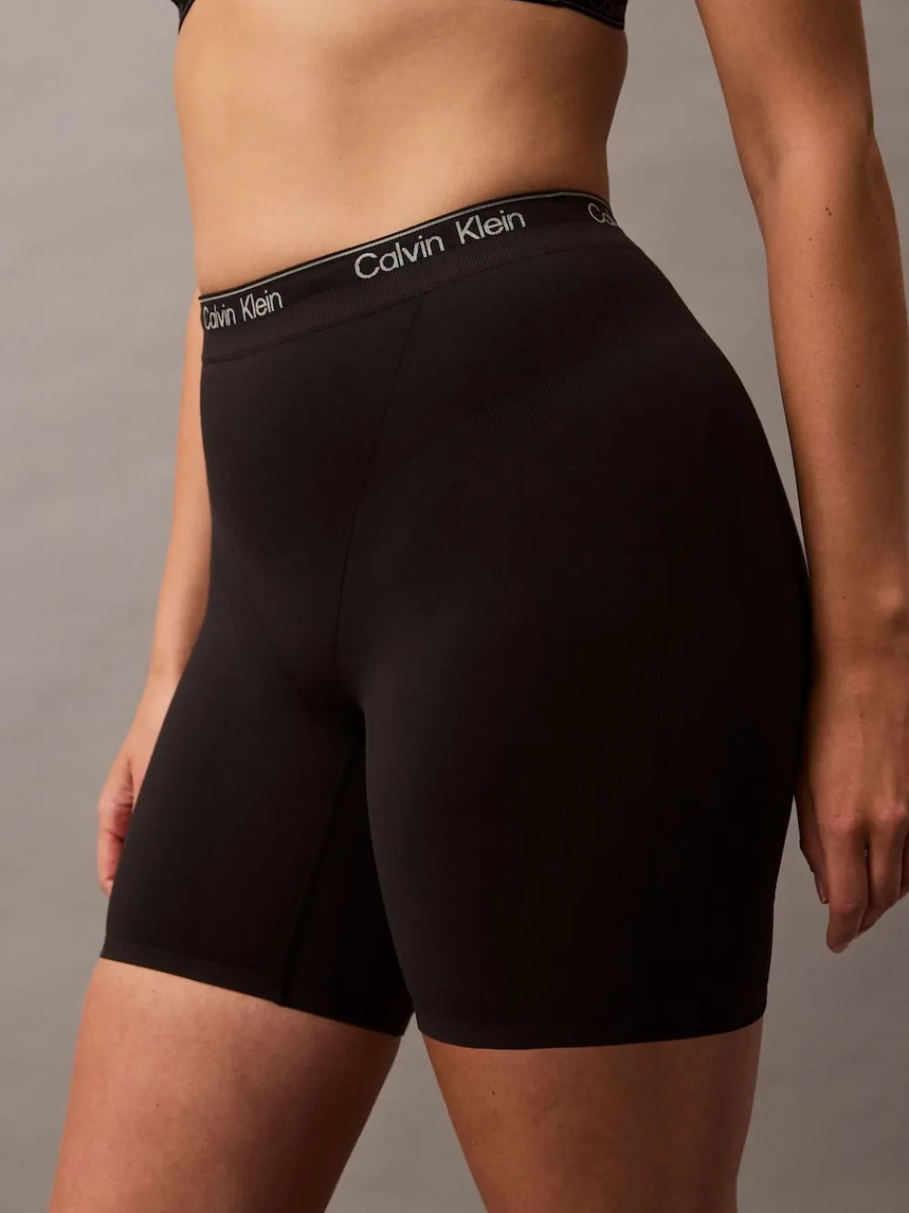 A Calvin Klein icon reimagined in shapewear silhouettes. Crafted from a flexible stretch blend, offering medium support and core shaping for a sleek, confident fit. Finished with the signature Calvin Klein logo band for a stylish look you can wear under anything. Highlights include: Medium support with zoned compression Engineered shaping Thigh slimming Seamless design Icon logo waistband Stitch-free finishing Machine washable. 44% Elastane, 33% Cotton, 23% Nylon.