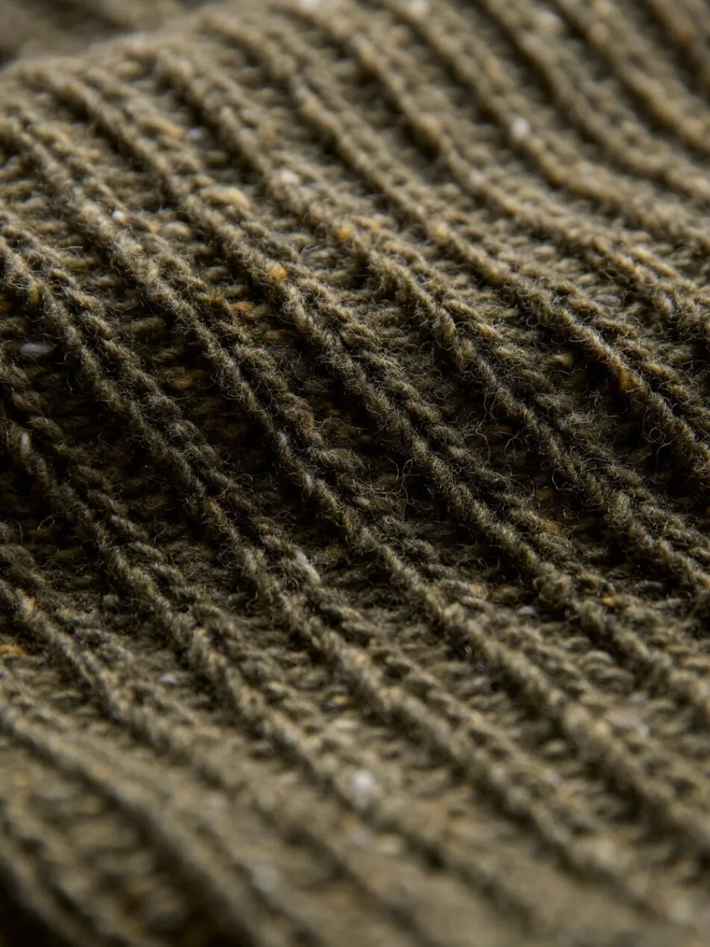 The combination of our Donegal wool and a chunky rib stitch is a match made in winter-accessory heaven! The simple structure really highlights the yarn s characterful flecks and pops of colour, but the overall effect is still understated enough that you can wear this beanie with anything and everything. Knitted in Britain, it s finished with a turnback for extra cosiness. Hand wash only. 100% Wool.
