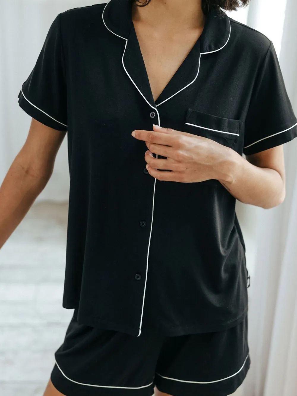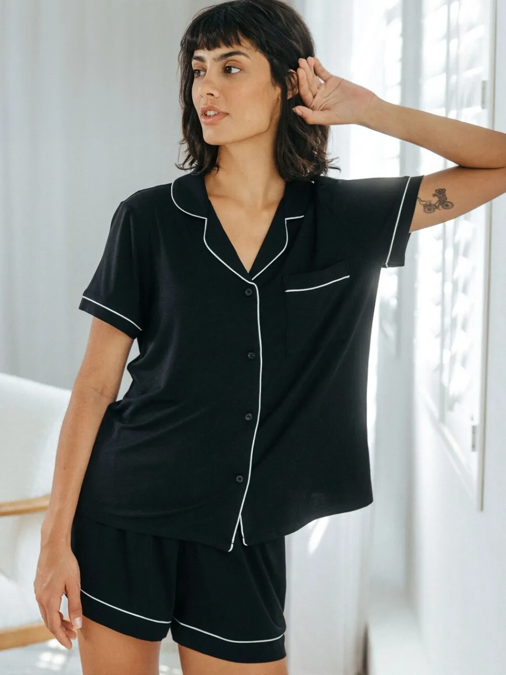 Be the first to review “Chelsea Peers TENCEL™ Modal Short Button Up Pyjamas Set Black Best” Cancel reply