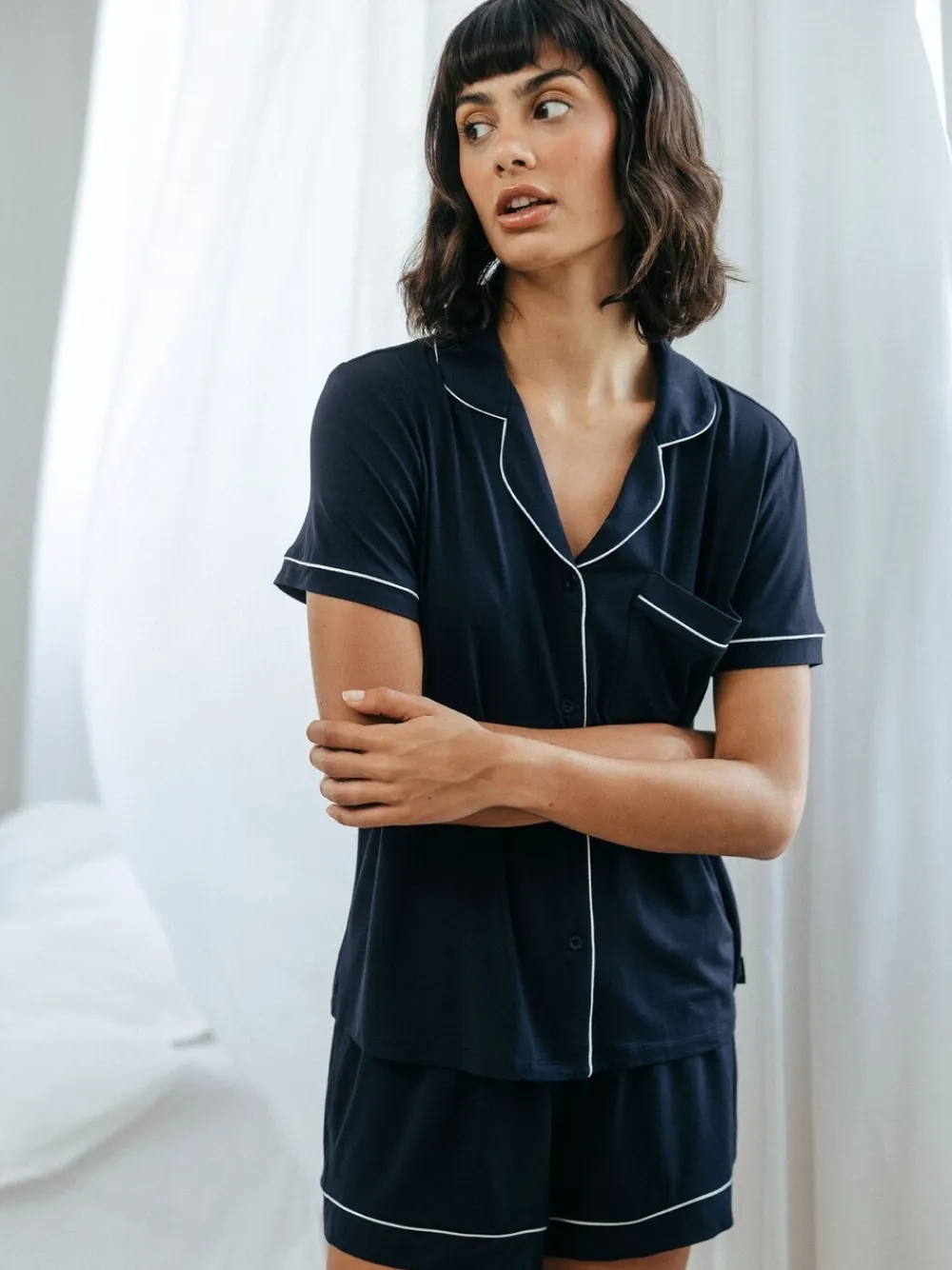 Soft and silky to the touch for ultimate comfort.Moisture-wicking and temperature-regulating properties.Short button-up pyjamas for a relaxed fit. Machine washable. 95% Modal, 5% Elastane. Warning: Keep away from fire and flames.