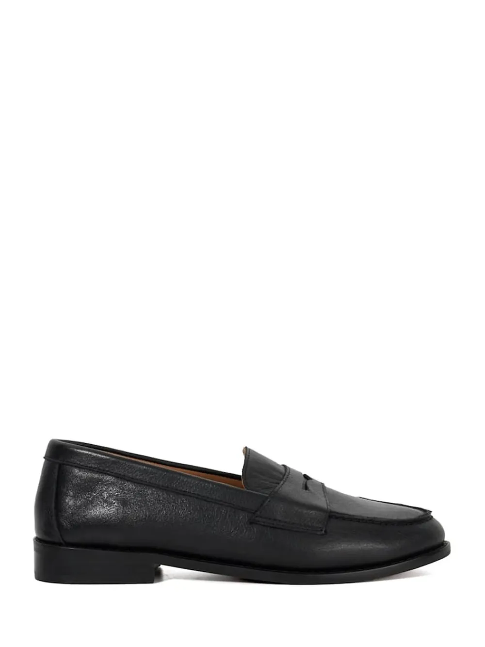 Refinement meets simplicity with our black Ginelli penny loafers. This signature slip-on is a stylish fusion of easy-to-wear comfort and timeless style. The cleanly shaped silhouette rests on a flat sole with a small stacked heel. Heel height 1cm. Upper – 100% Leather, Lining. and Sock – 100% Rubber.