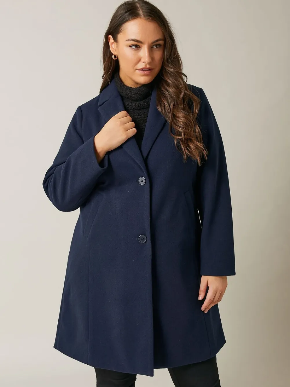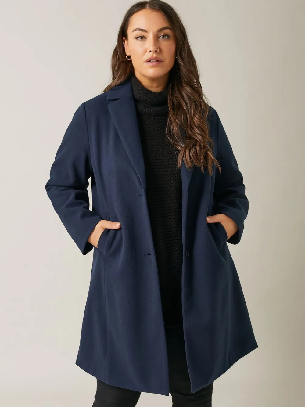 Fit Fashion Notes: Invest in timeless tailoring this season with this classic city coat. Crafted from a soft woven fabric, this coat seamlessly blends comfort and sophistication. It features notch lapels, two side pockets, button fastenings and long sleeves. Layer over your favourite knitwear and jeans for a weekend-winning look youll love. Why We Love It: A timeless coat youll love.Features: Two side pockets, Button fastenings, Long sleeves, Notch lapels, Made from a soft woven fabric.Model is 5 10.5/178cm and size UK 16/EU 44 Machine washable. Main 100% Polyester. Lining 100% Polyester.
