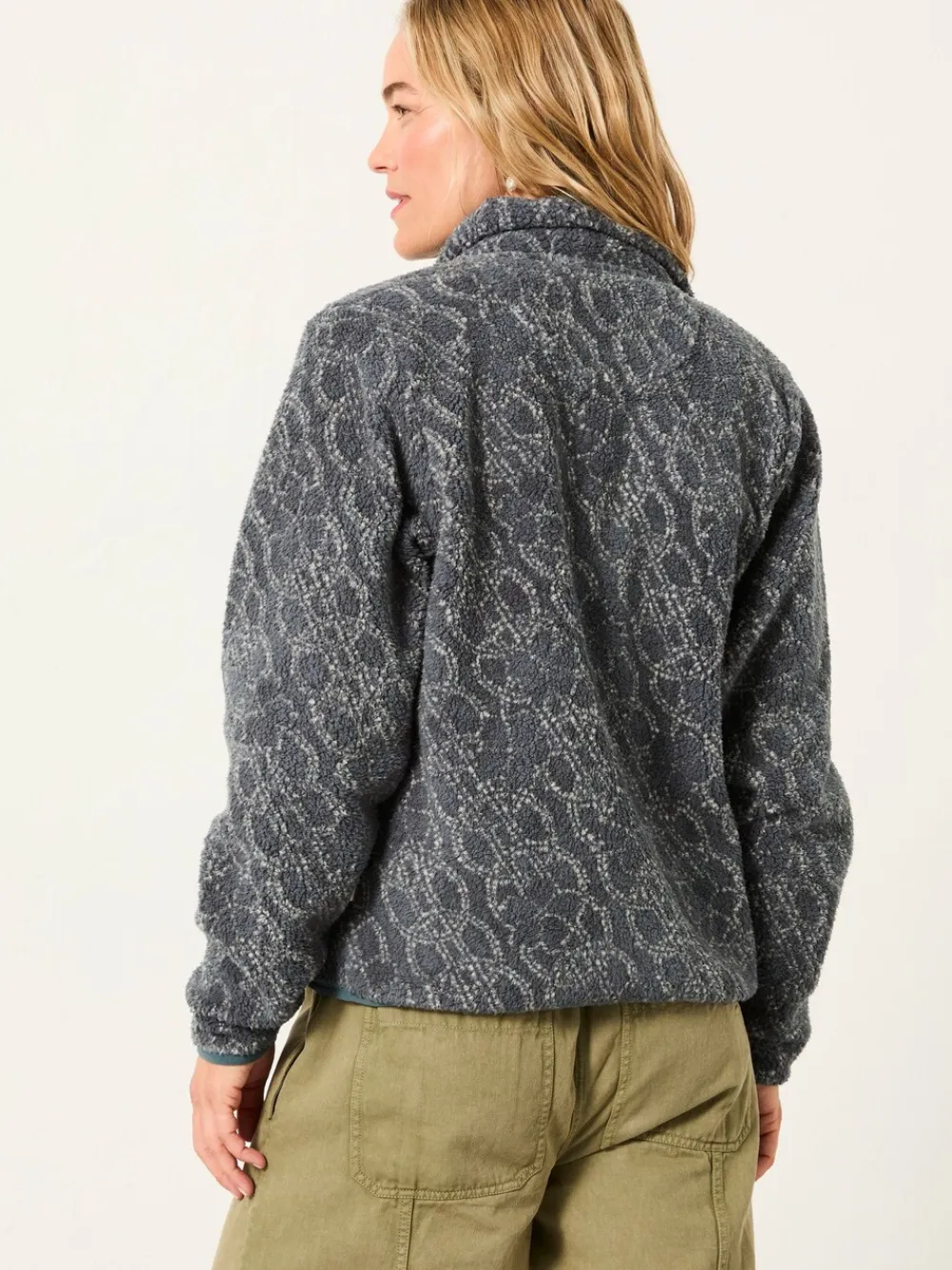 Fat Face FatFace Blue Texture Floral Zip Through Fleece Outlet