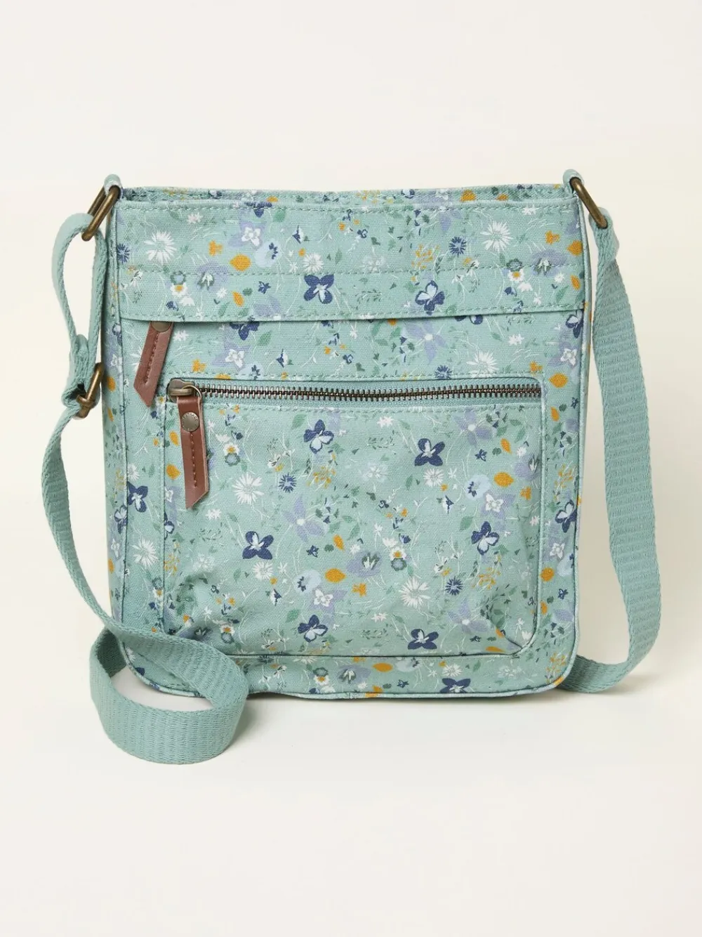Our floral canvas crossbody bag is designed with a handy pocket at the back and two zip pockets at the front to keep essentials organised. Finished with an adjustable strap for comfort and ease, it’s the perfect everyday bag – ideal for weekend outings, day trips, or adding a touch of personality to your look. Height 23.5cm Width 22.5cm Main 100% Cotton. Lining 100% Cotton.