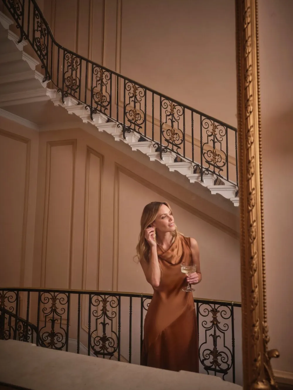 Our Liza maxi dress is designed to turn heads. Crafted from a soft, breathable fabric blend that moves beautifully with you, this body skimming silhouette features a cowl neck, a heavy draped satin feel, a fitted boddice, and an asymmetric seam detail for a refined yet confident finish. It features a gorgeous fabric with a luxurious weight and shine. Weighted and effortlessly graceful, the Liza is made for moments that call for elevated ease and understated glamour. Regular side neck to hem 53″ / 135cm. Machine washable. 100% Recycled polyester.