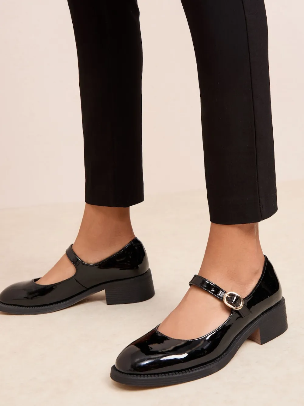 Step out in style with these timeless Mary Jane shoes, featuring a glossy patent faux leather finish. The walkable low block heel and secure buckle fastening offer all-day comfort without sacrificing elegance. Ideal for workwear or elevating your everyday look. Patent faux leather Low block heel Buckle fastening Heel height: 4cm Upper – Other Materials, Lining & Sock – Textile, Other Materials, Sole – Other Materials.