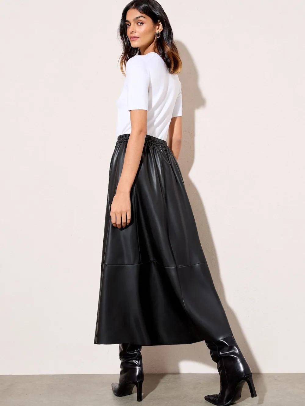 Friends Like These Black Petite Faux Leather Midi Skirt Outlet
