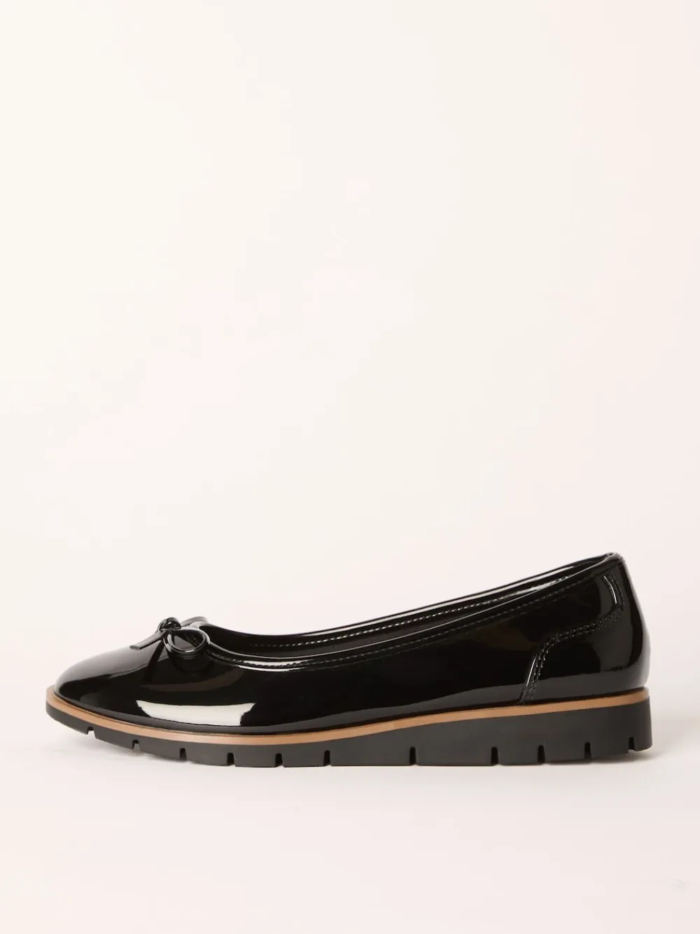 Friends Like These Black Standard Fit Comfort Patent Faux Leather Flat Ballerina Shoes Clearance