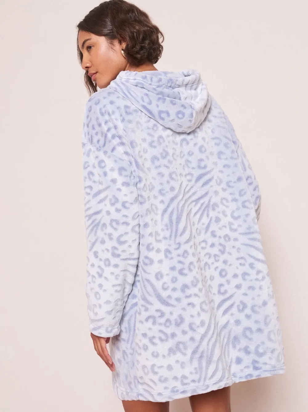 Snuggle up in wild style. Our Zebra Snoodie is oversized, ultra-soft, and features a bold zebra print, perfect for movie nights and chilly mornings. Model waers Uk size S………… 100% Polyester.