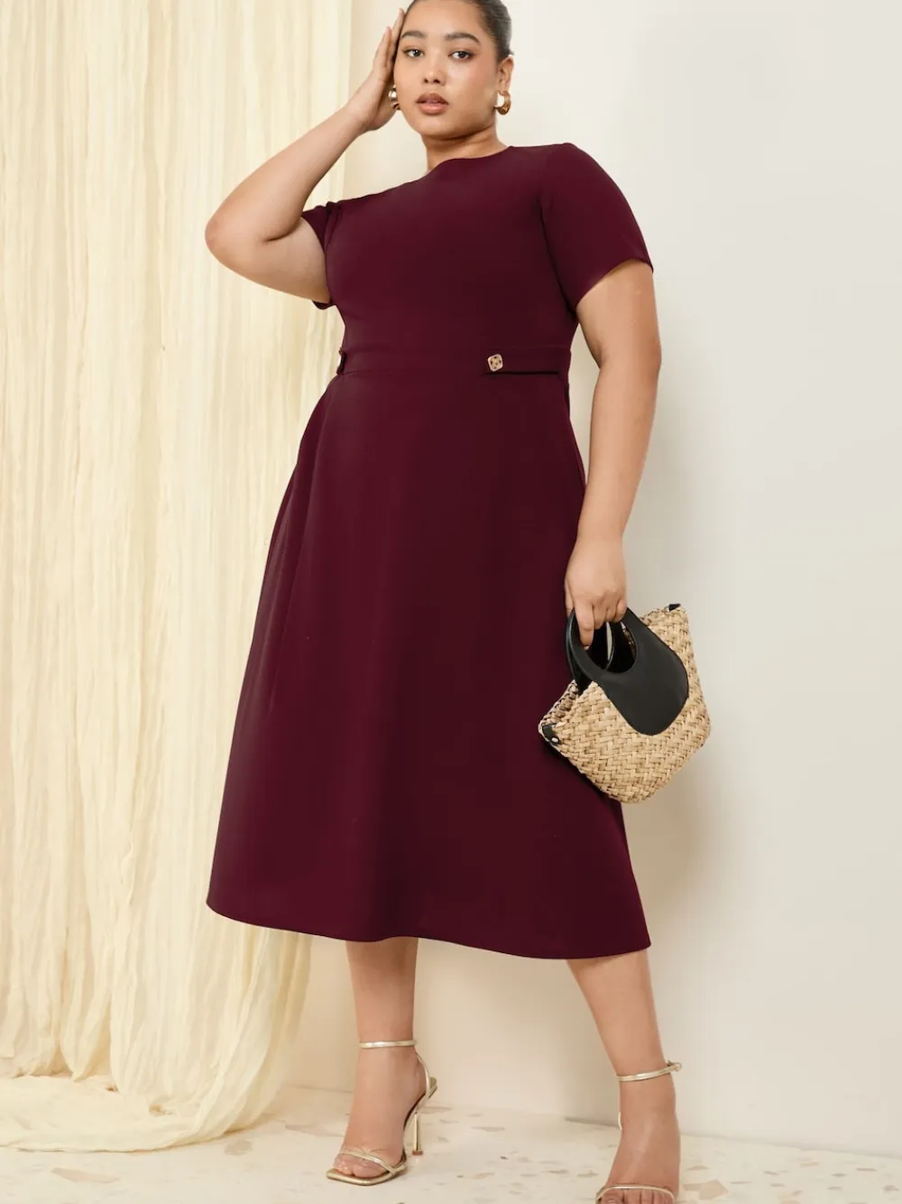 Be the first to review “Friends Like These Curve Tab Detail Short Sleeve Midi Tailored Dress Berry Red Best” Cancel reply