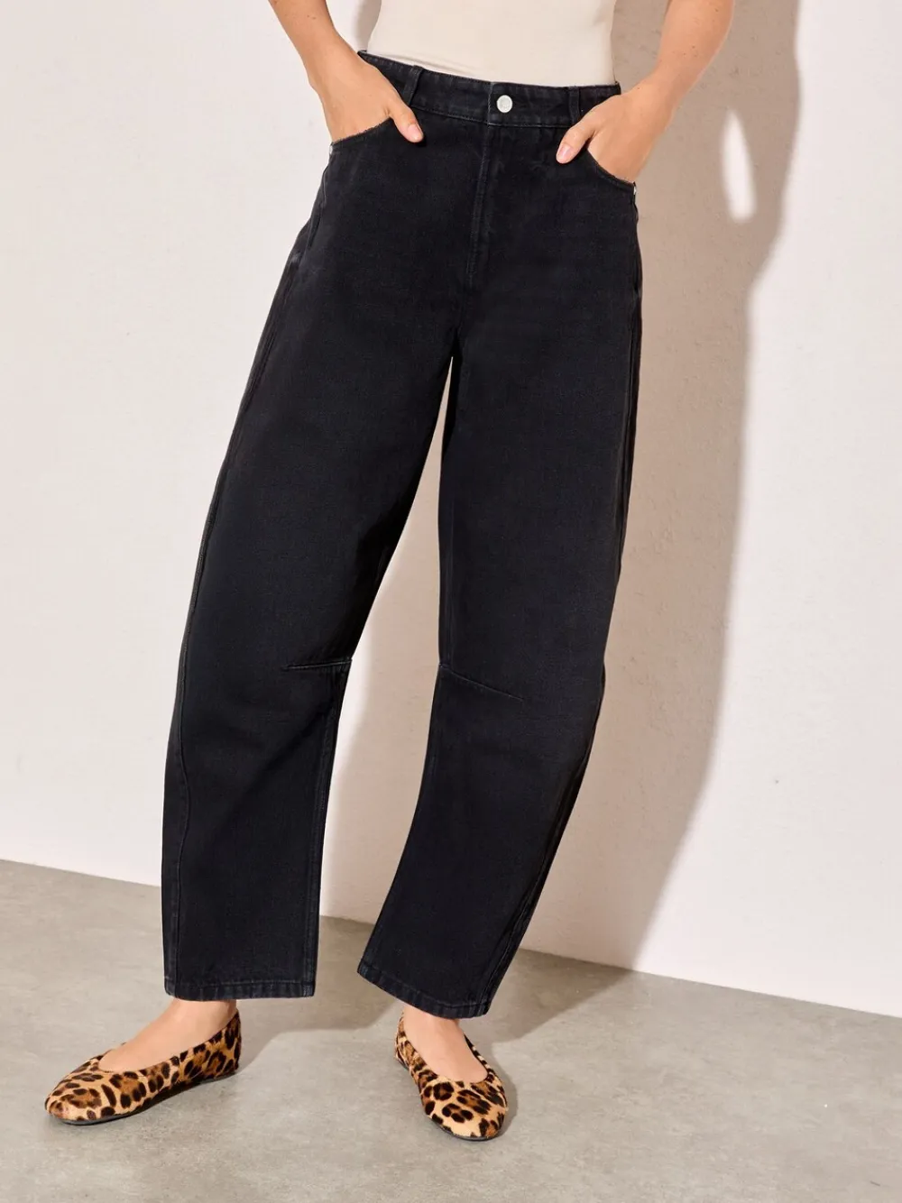 Introducing your new go-to pair of jeans. Barrel shaped denim jeans with loose legs that taper towards the end and a little cropped ankle. Features: Barrel shape Cotton-rich denim Button and zip fastening 5-pocket detail Approx wearing length: 71cm. 100% Cotton.