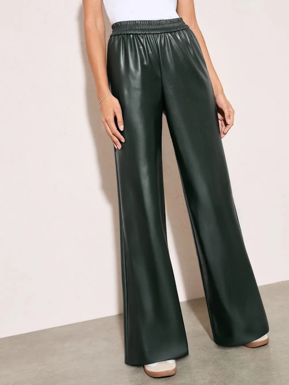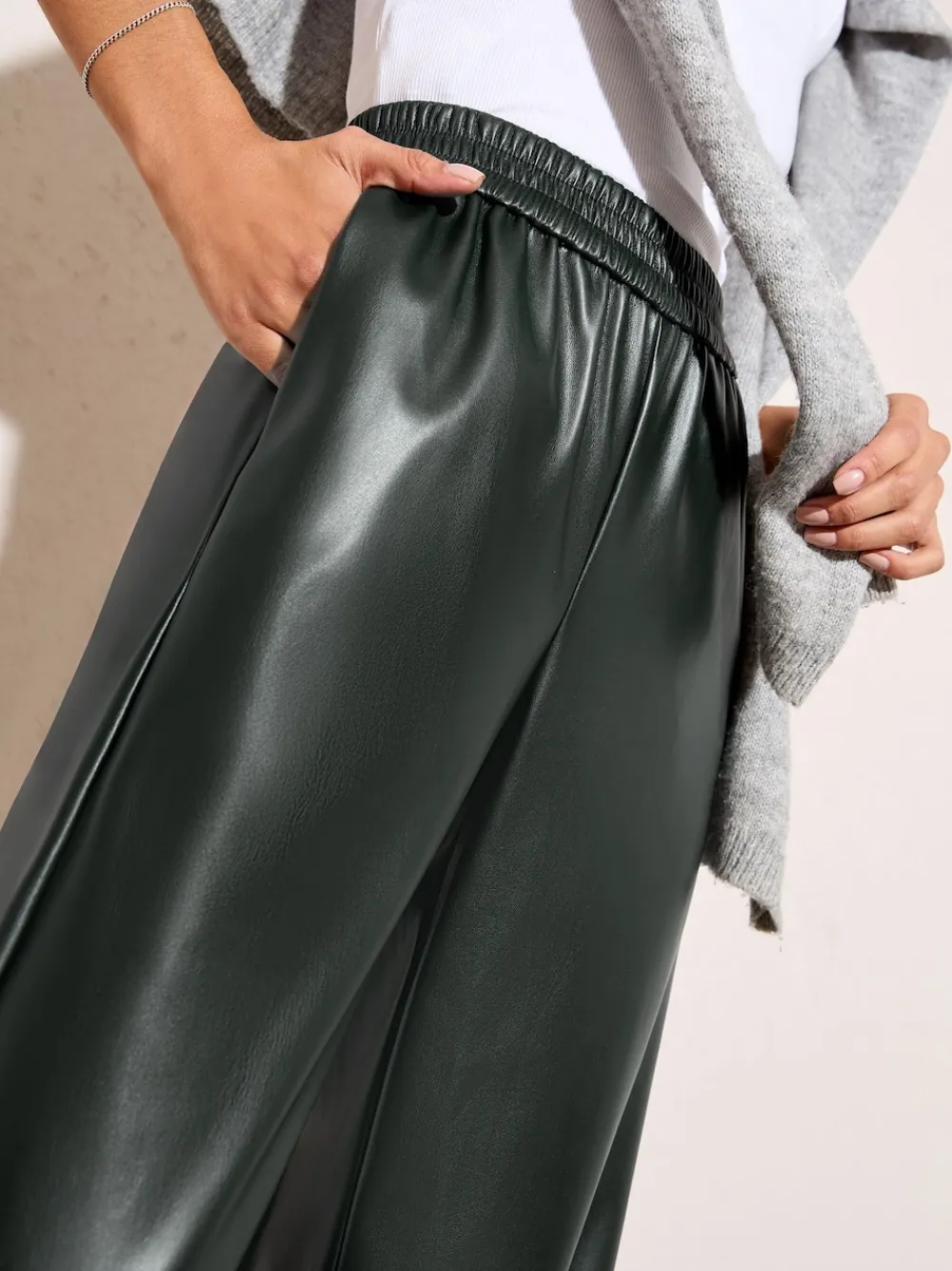 Friends Like These Faux Leather Elasticaed Trousers Forest Green Online