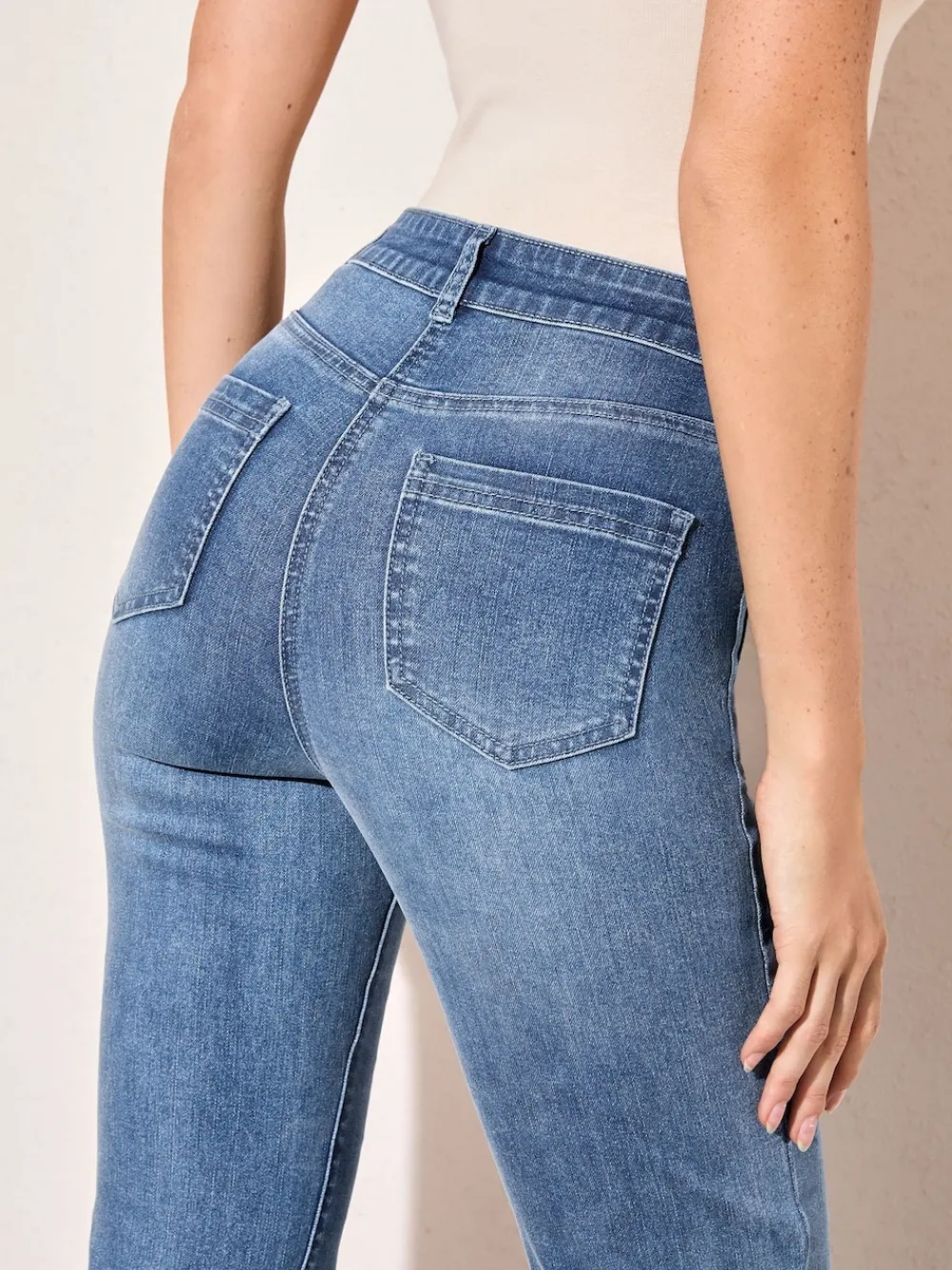 Be the first to review “Friends Like These Mid Blue High Waist Pocket Flare Jeans Online” Cancel reply