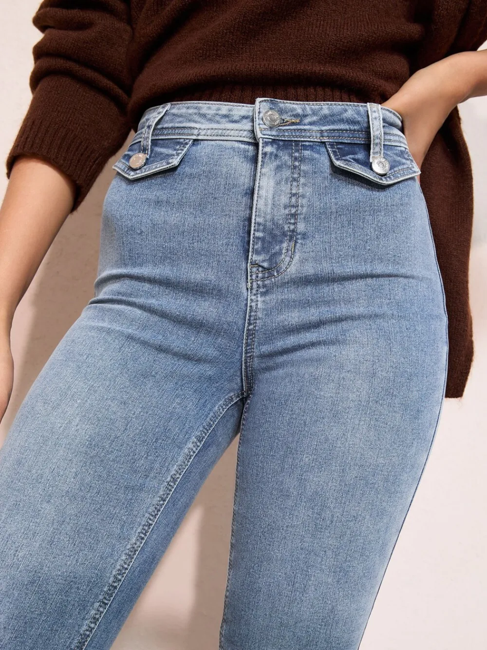 High waisted pocket detail flare with fly button fastening, in comfort stretch denim fabric. Tap into the cowboy trend with these jeansFeaturing: Waistband pocket detailButton and zip fastening Flared Western style. Model is a size 8 and is 5’9” /175cm approx wearing length: 81cm 69% Cotton, 25% Polyester, 4% Viscose, 2% Elastane.