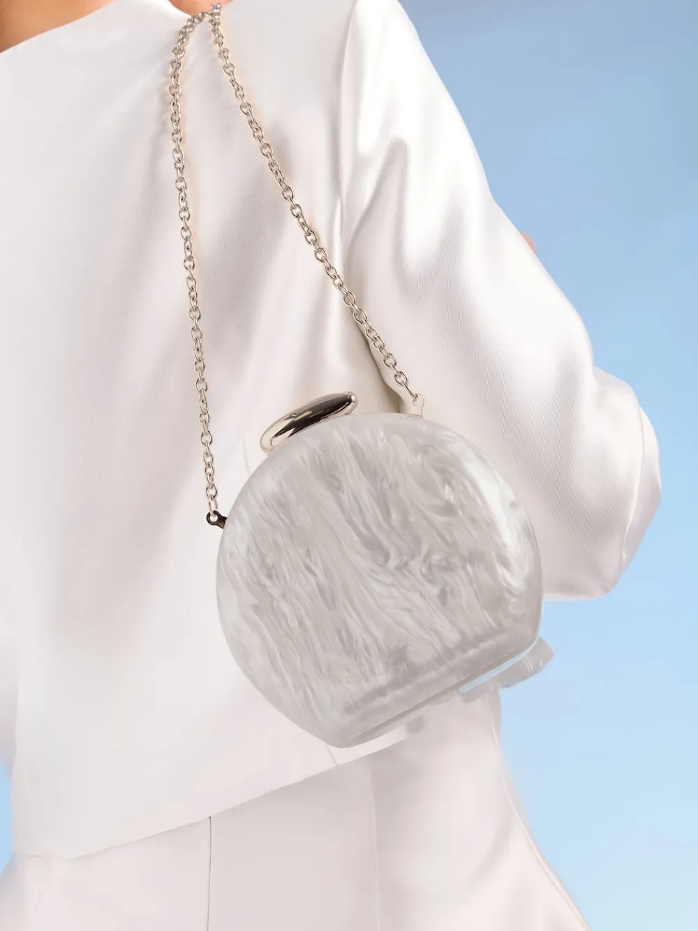 Be the first to review “Friends Like These Round Acrylic Clutch Bag Bridal White Online” Cancel reply